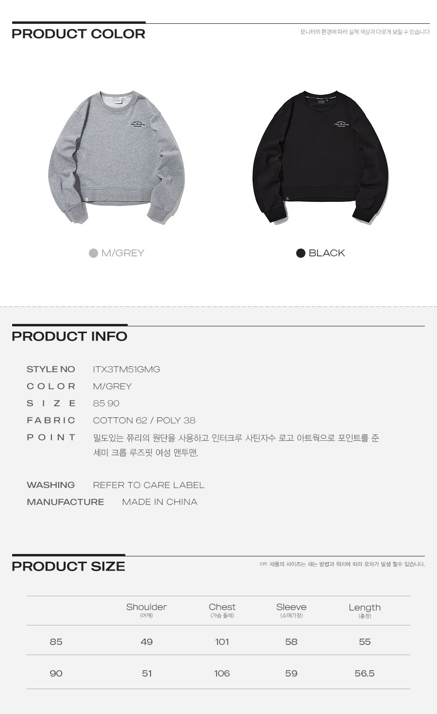 WOMEN'S Bear Friends Pigment Smoky Crop Sweatshirt Charcoal (FCF1TS206W)