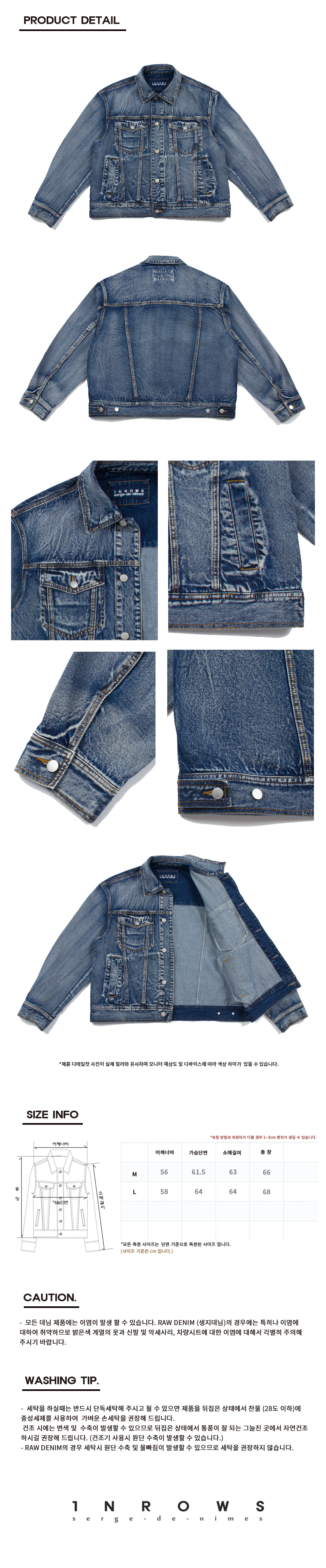 가죽같지만, 가죽보다 튼튼하고, 가죽보다 가볍고, 가죽보다 관리가 편리한 코팅데님소재의 데님자켓입니다 (COTTON 97% / SPANDEX 3%)