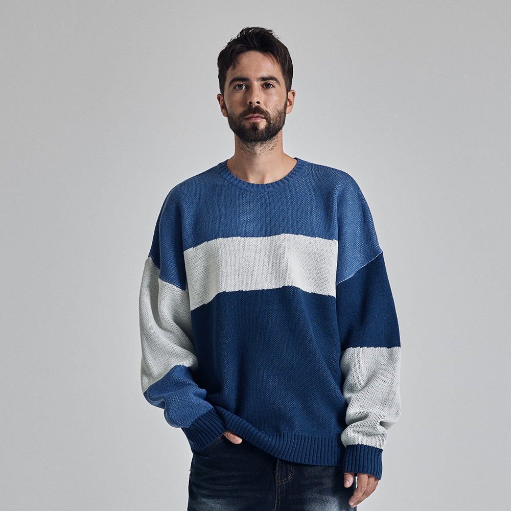 BESSEGGEN MASCULINE SWEATER - GREY MEL. / COBALT / OFF WHITE / NAVY