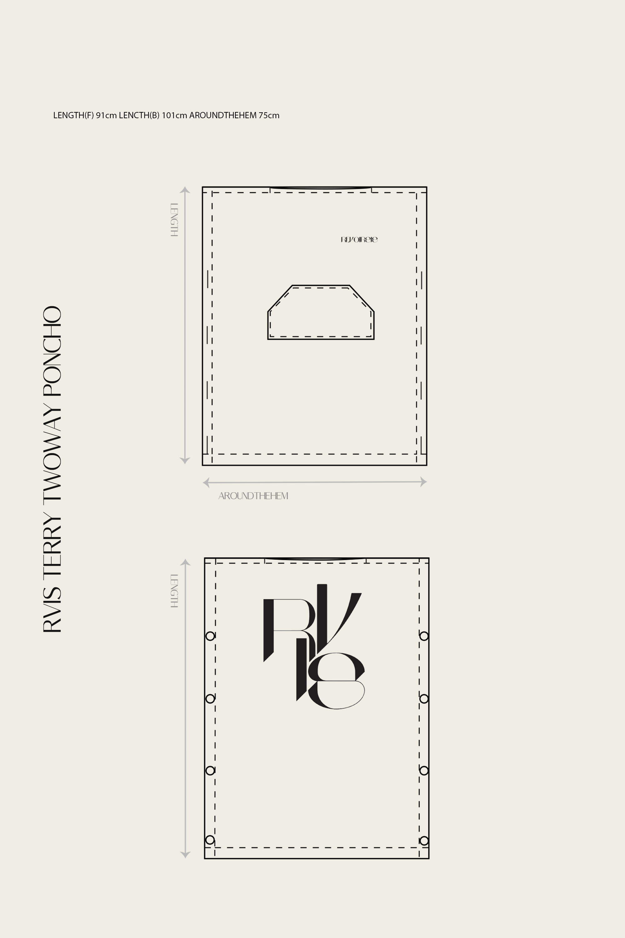 LENGTH(F) 91cm LENCTH(B) 101cm AROUNDTHEHEM 75cm