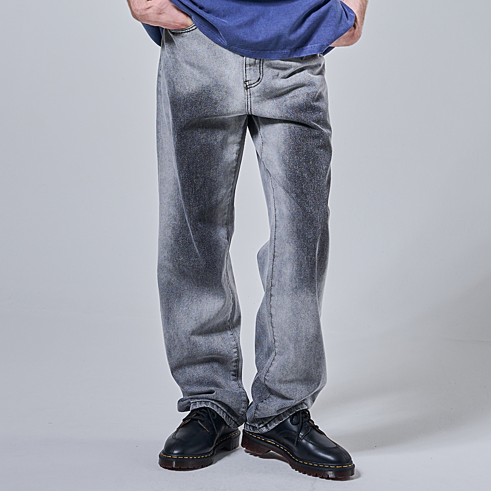 Brown Dyeing Black Denim Wide Pants ((Brown Black))