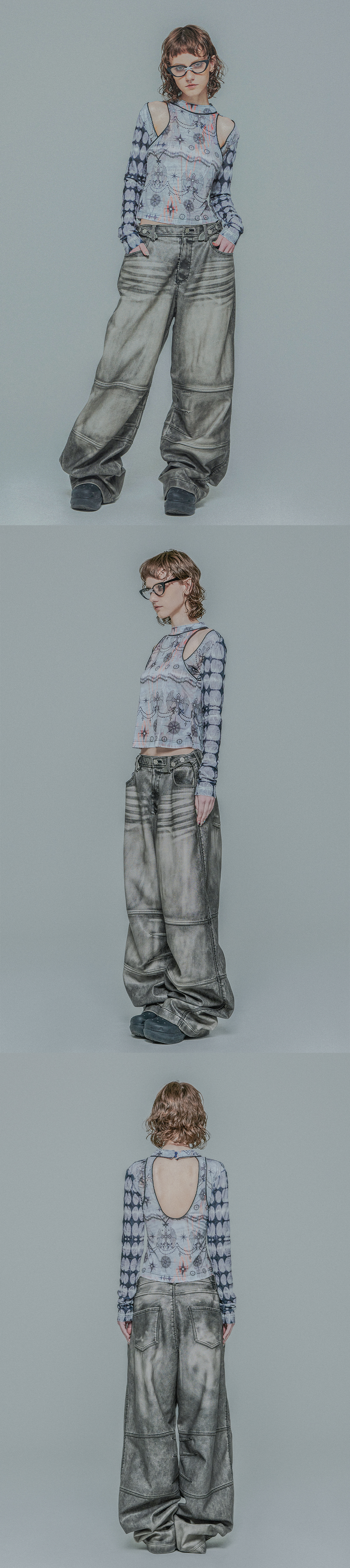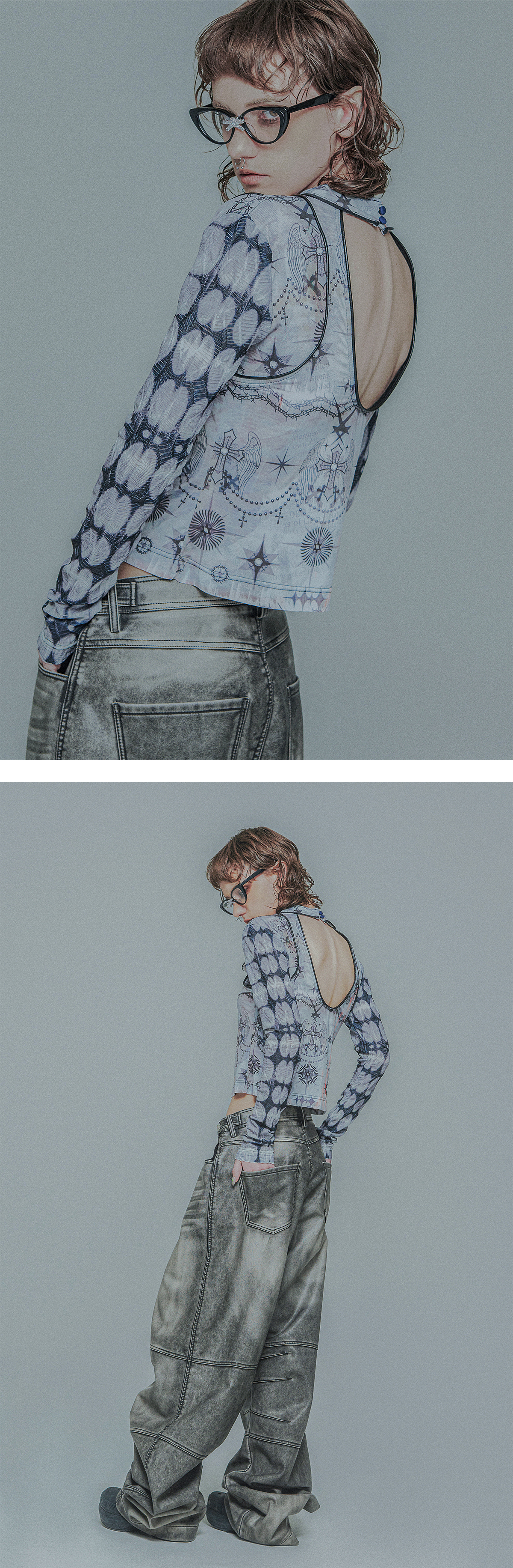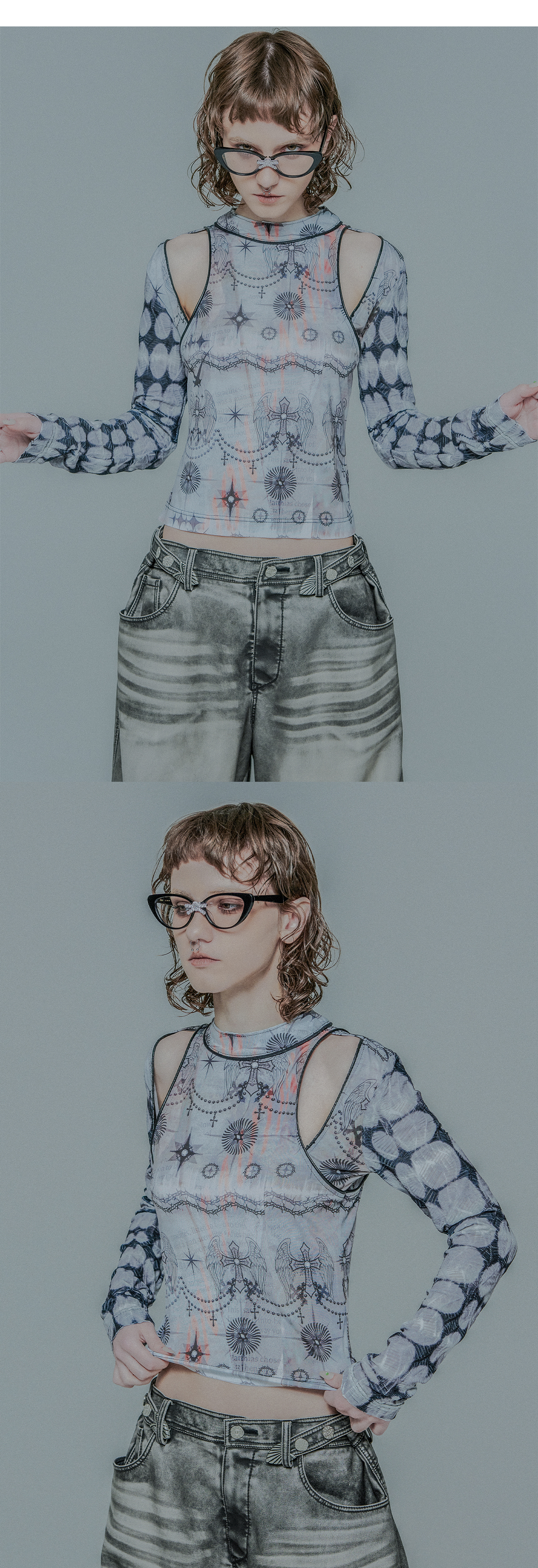 Metal Swelling Graphic Mesh Long Sleeve