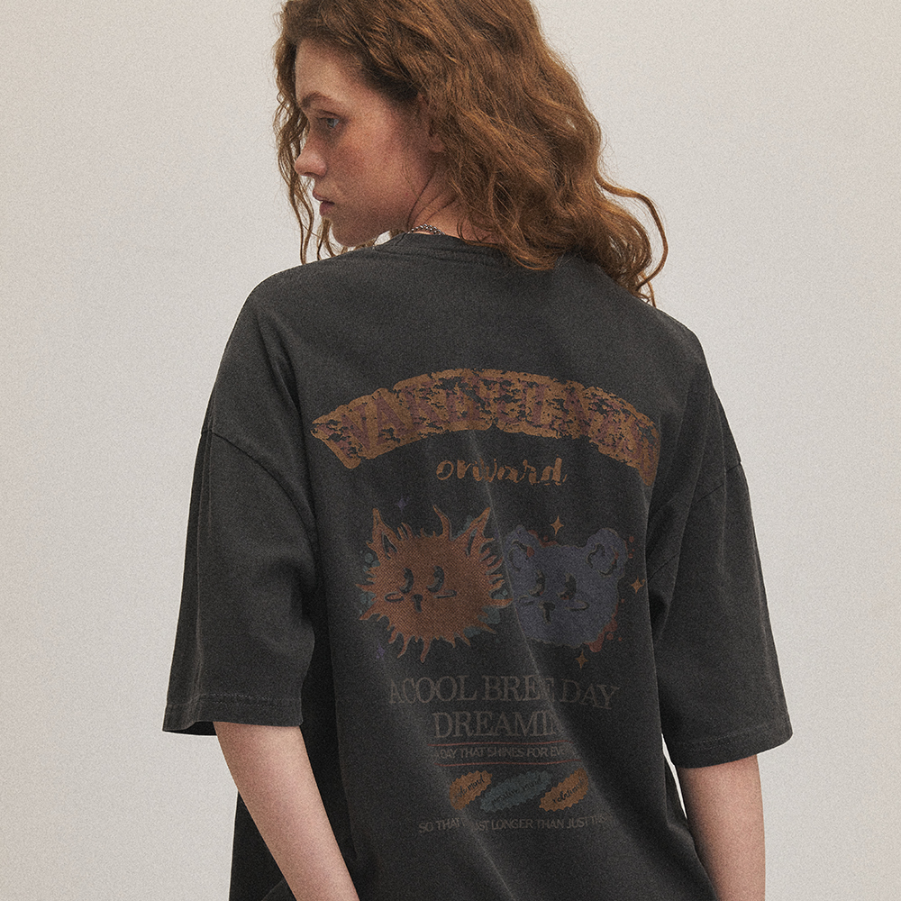 가벼운 소재로 그래픽이 특징인 스트릿 캐쥬얼 반팔티셔츠