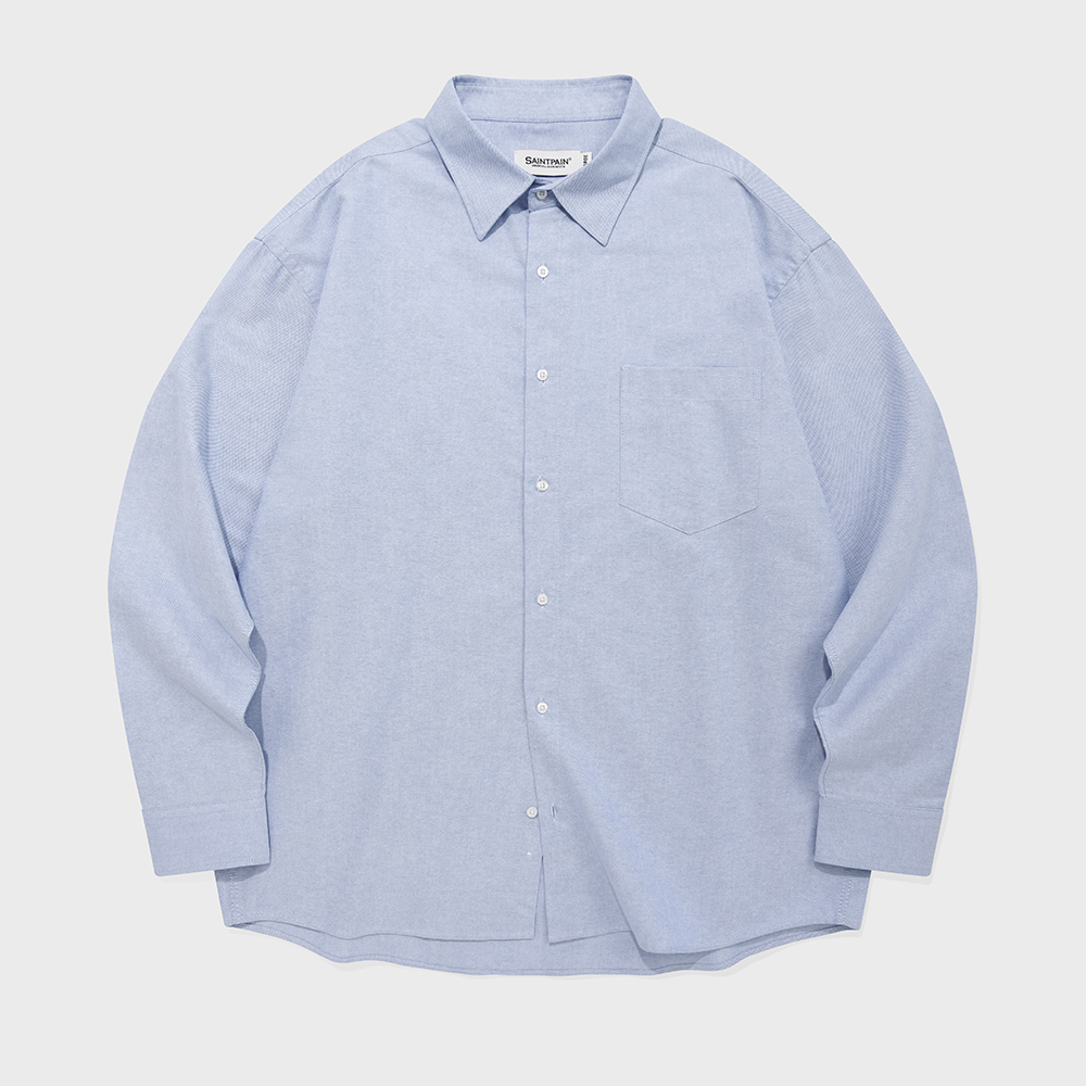 데님 소재로 제작된 오버핏의 플리츠 셔츠