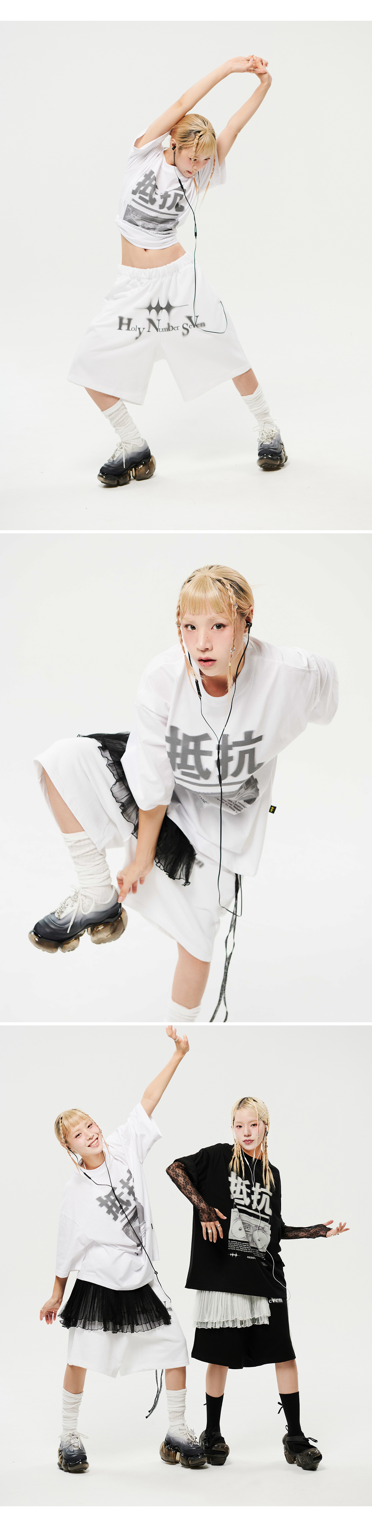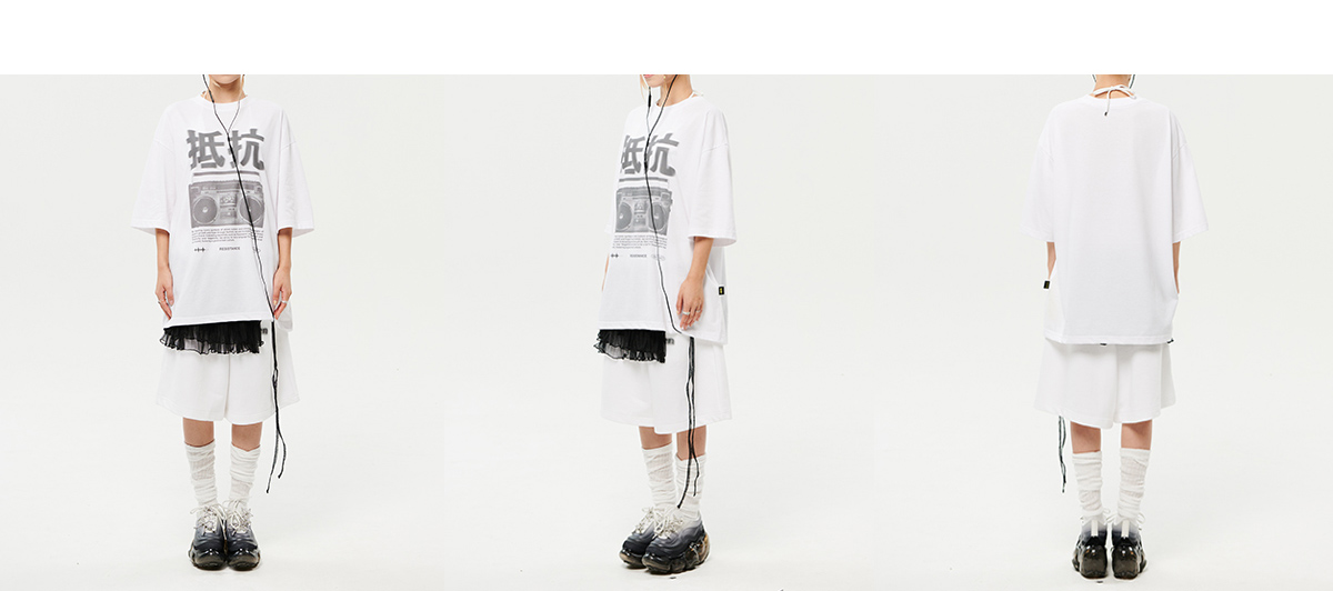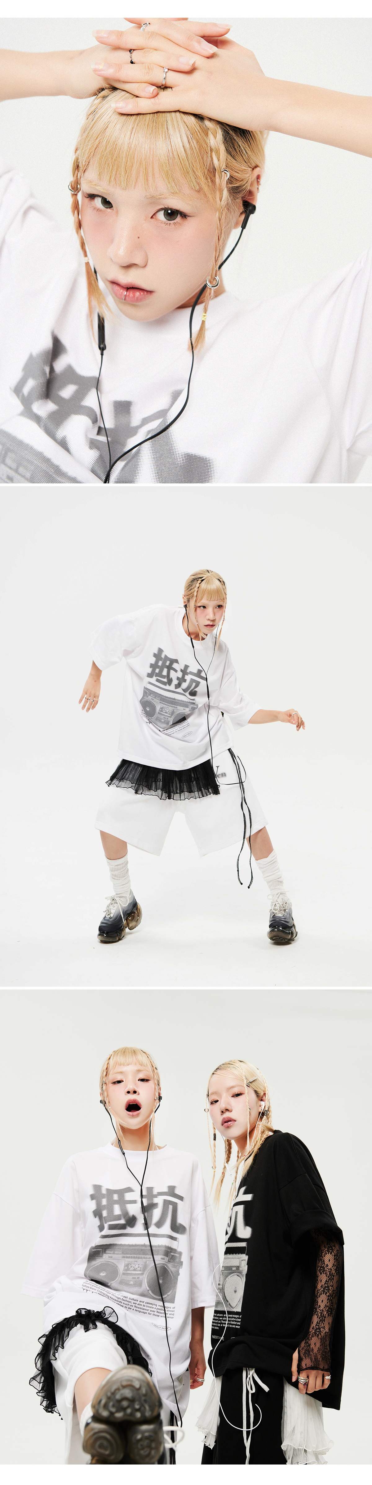 Oversized Hip Hop Dance Studio Radio Graphics Short Sleeve T-Shirt_Black