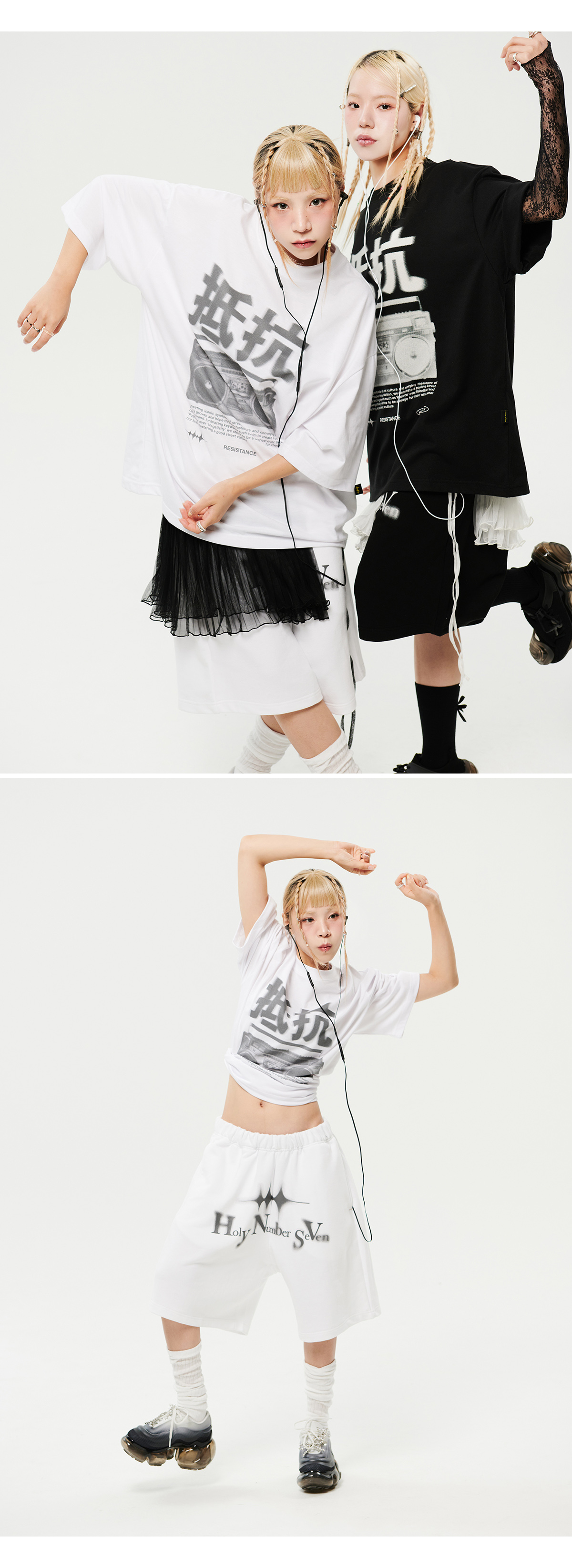 가벼운 소재로 그래픽이 특징인 스트릿 캐쥬얼 반팔티셔츠