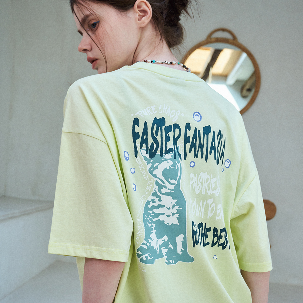 가벼운 소재로 그래픽이 특징인 스트릿 캐쥬얼 반팔티셔츠