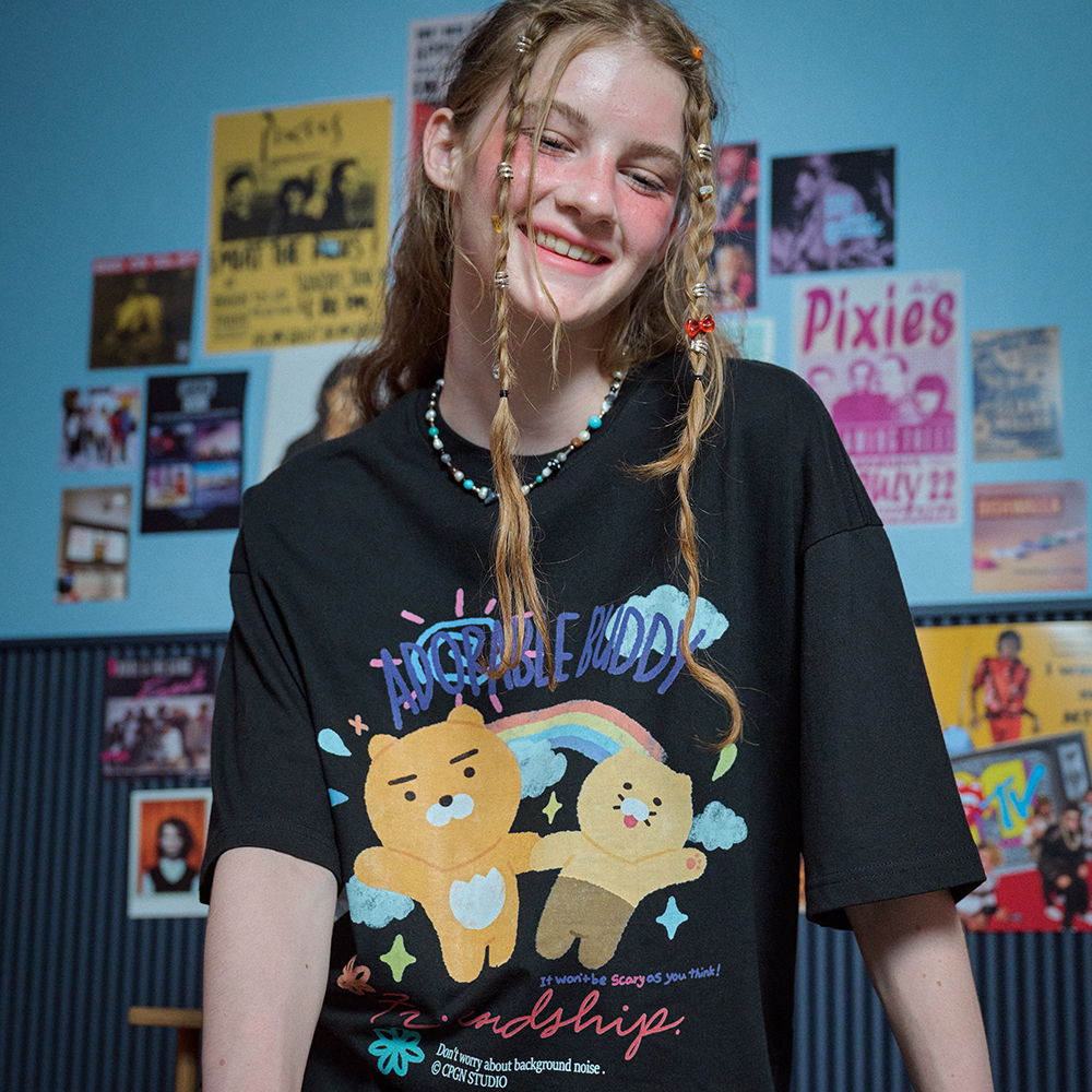 가벼운 소재로 그래픽이 특징인 스트릿 캐쥬얼 반팔티셔츠