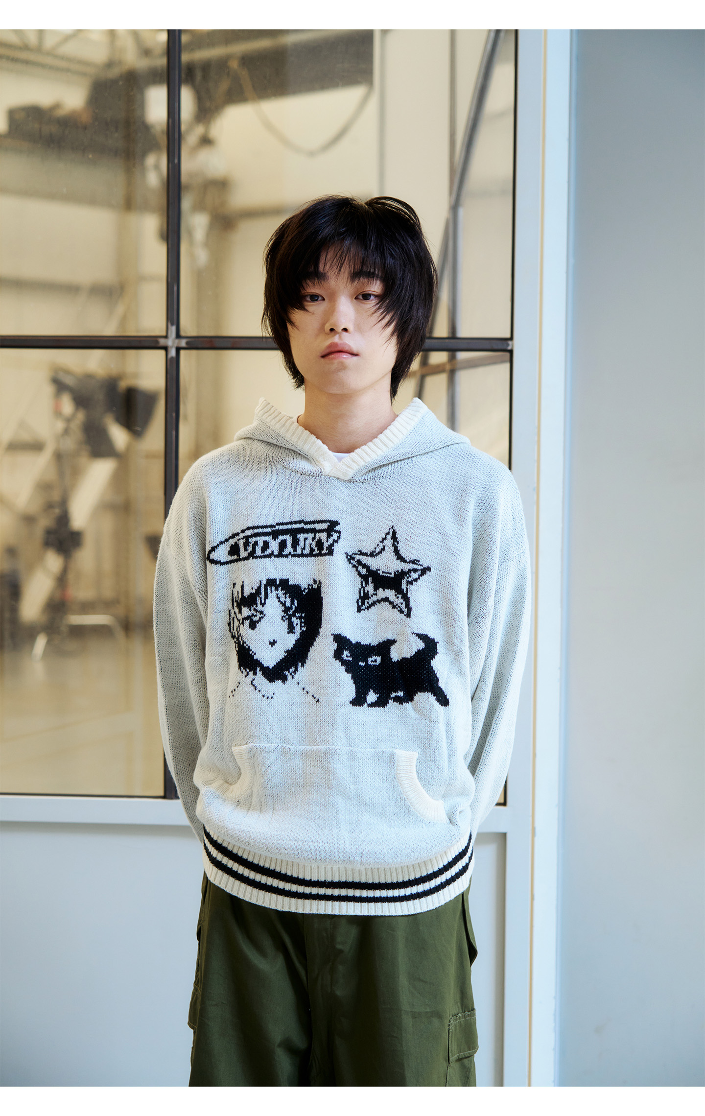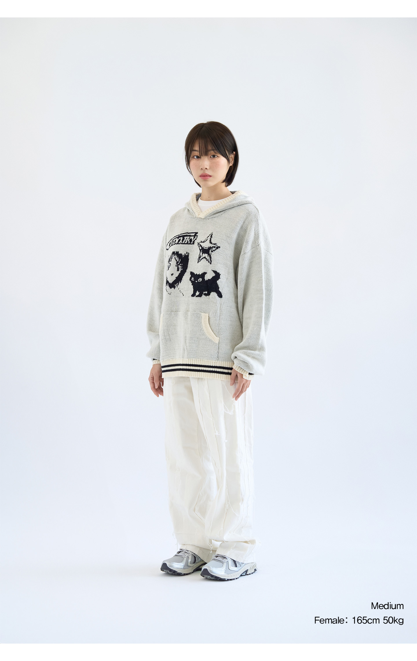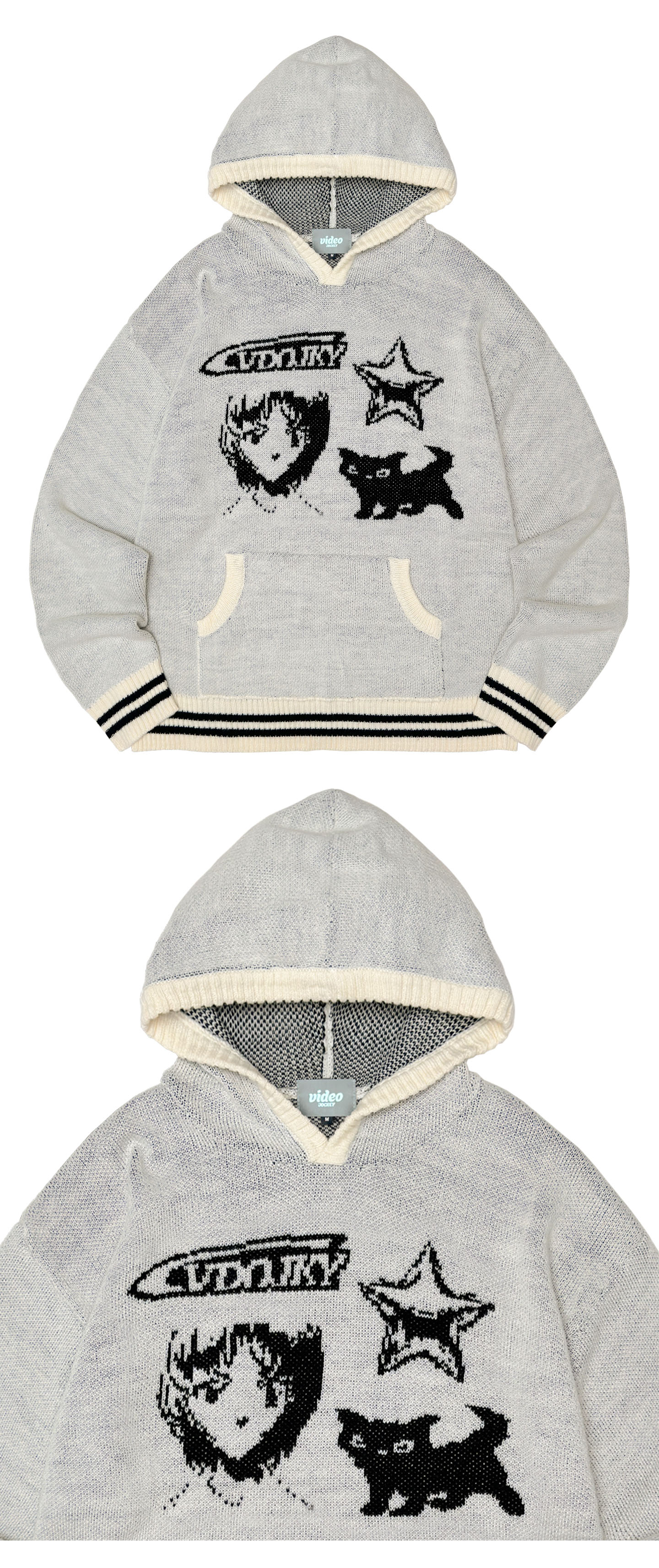 STAR CAT 오버핏 후드 티셔츠[화이트 메란지]