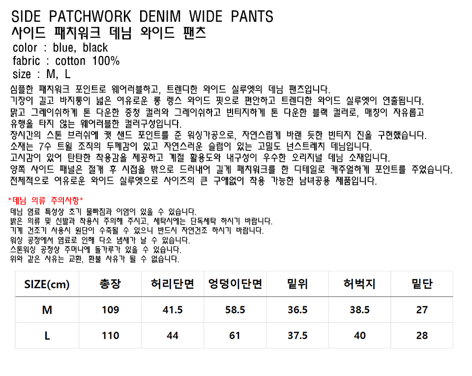 뒷포켓 D자수가 포인트인 와이드 데님팬츠