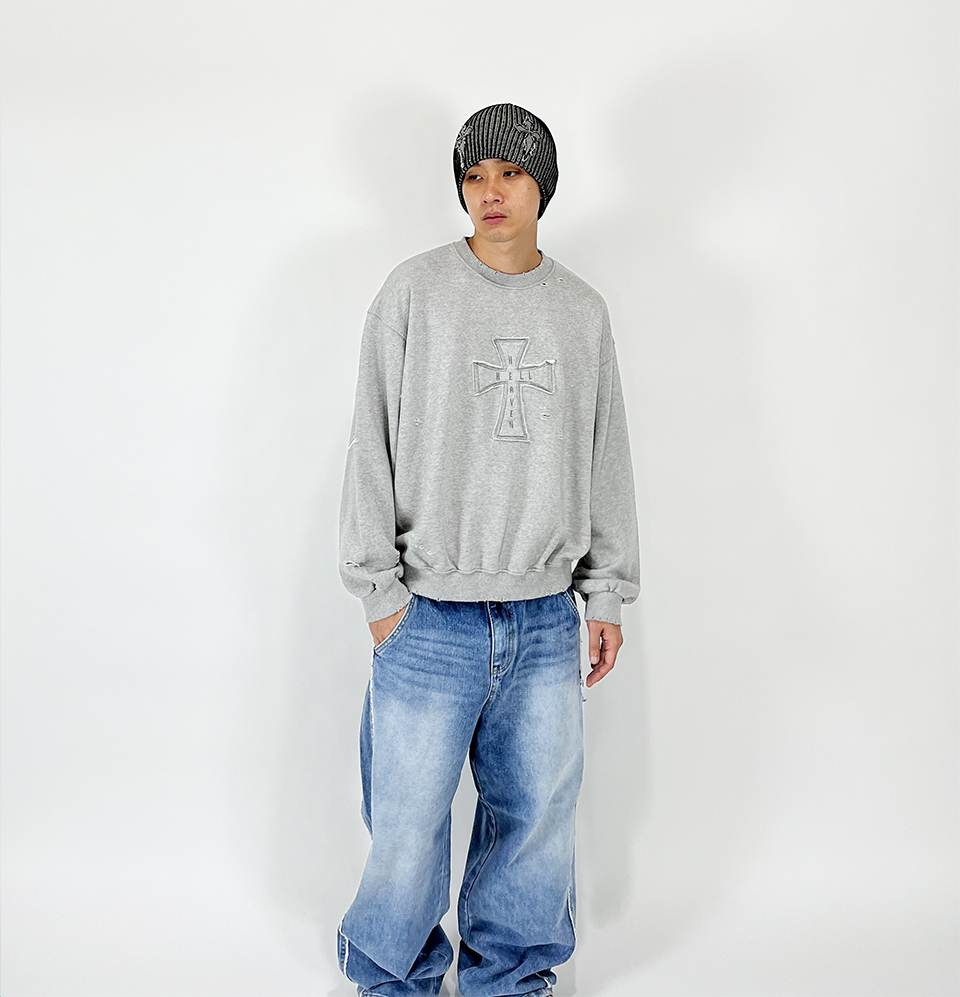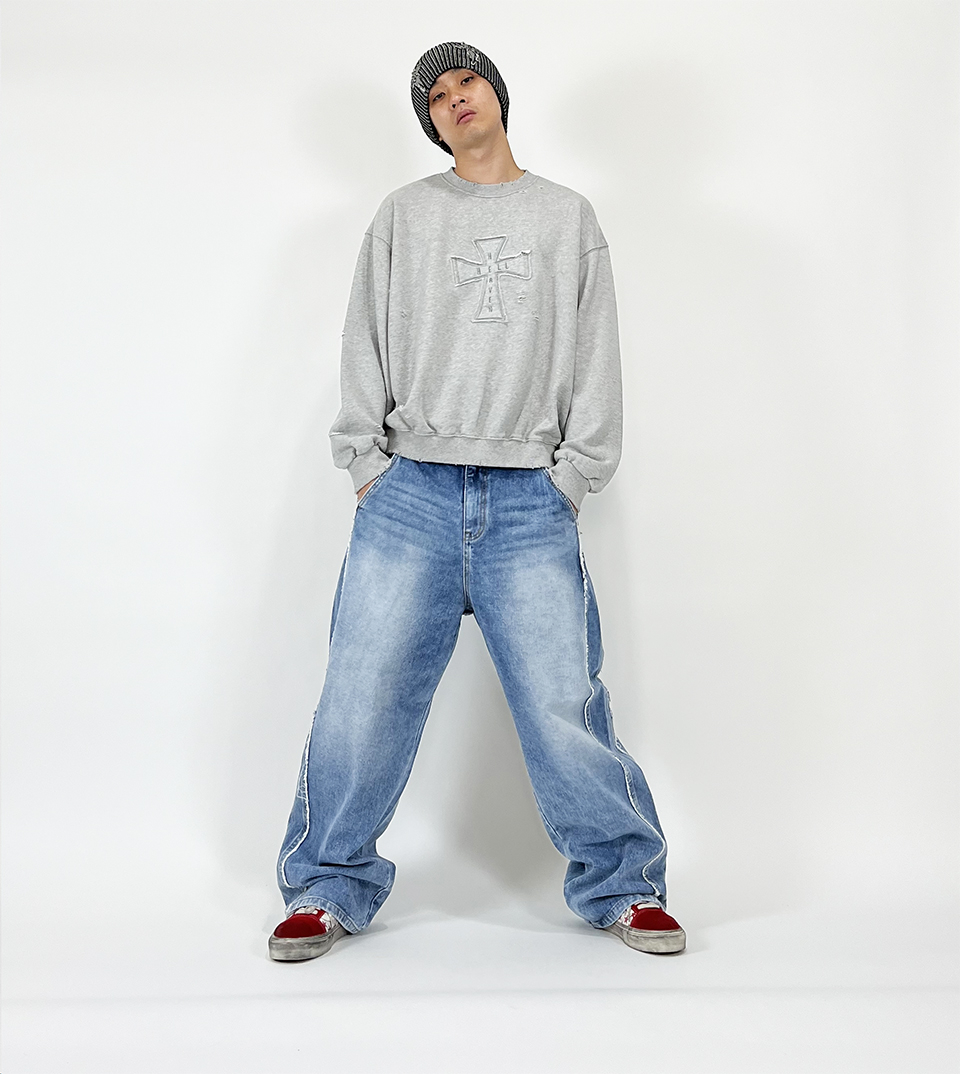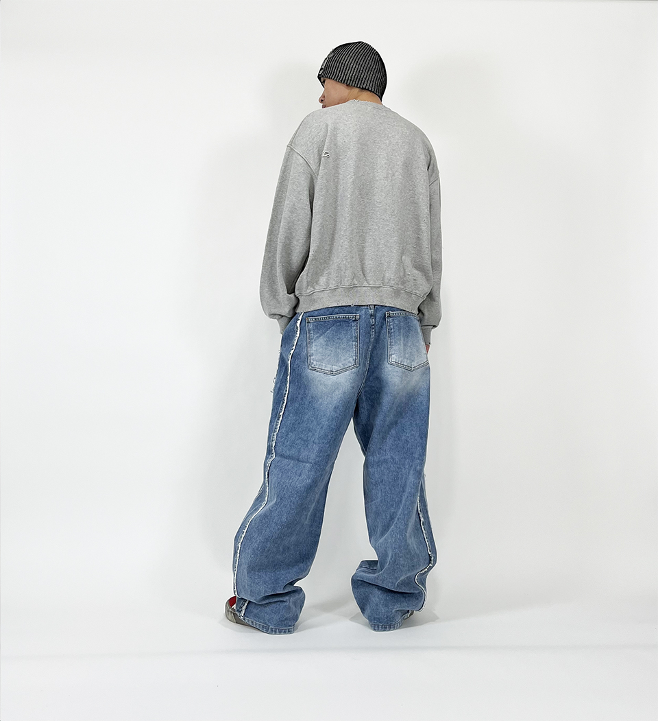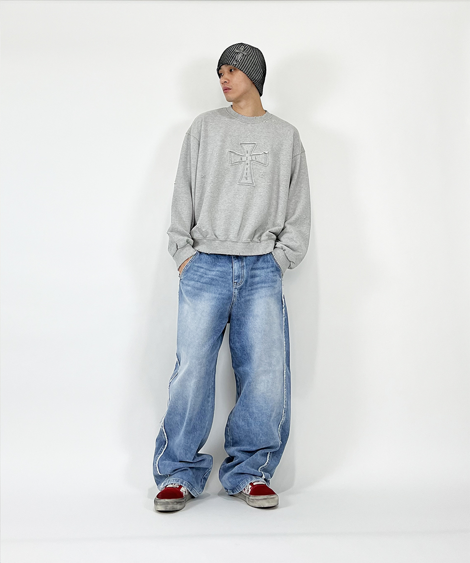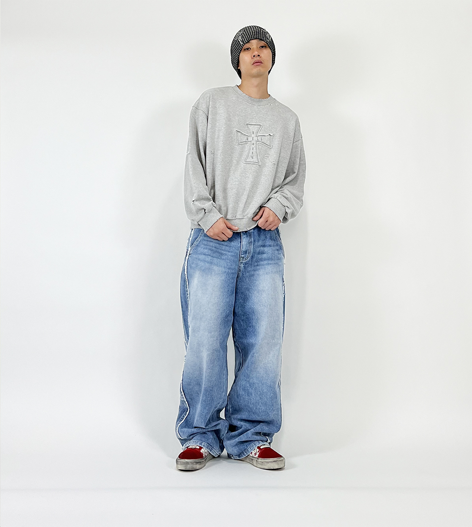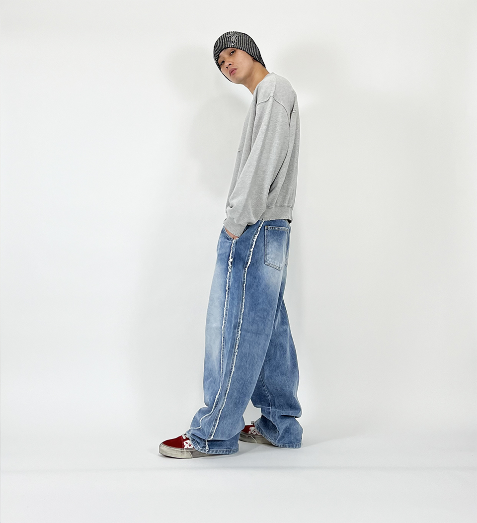 TWIST INCISION WASHING DENIM PANTS(MEDIUM BLUE)