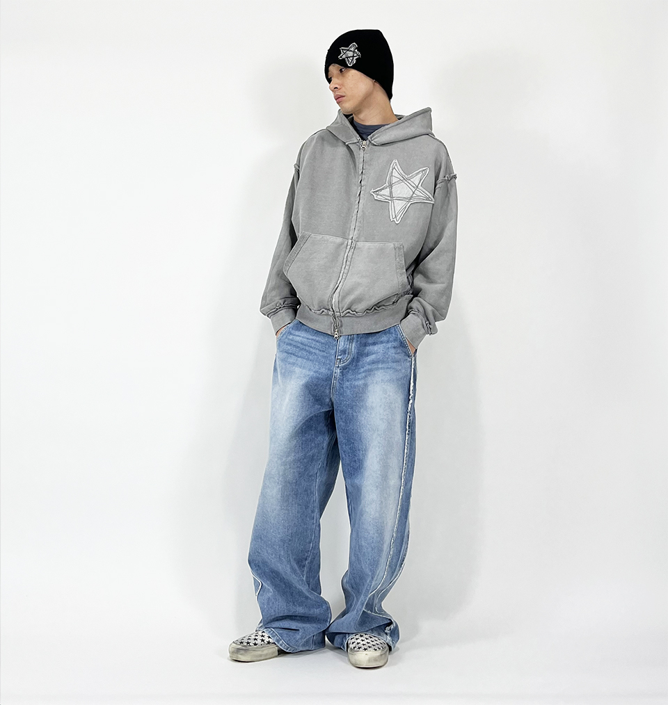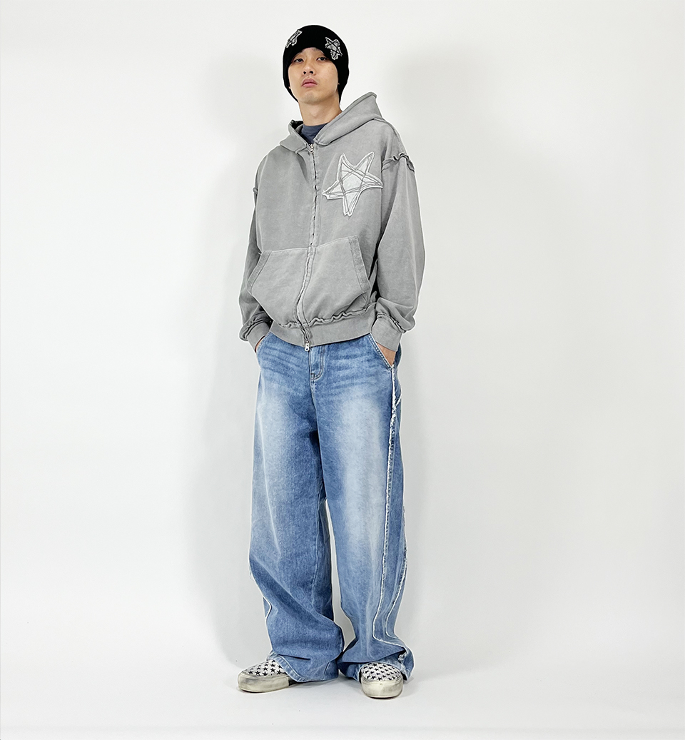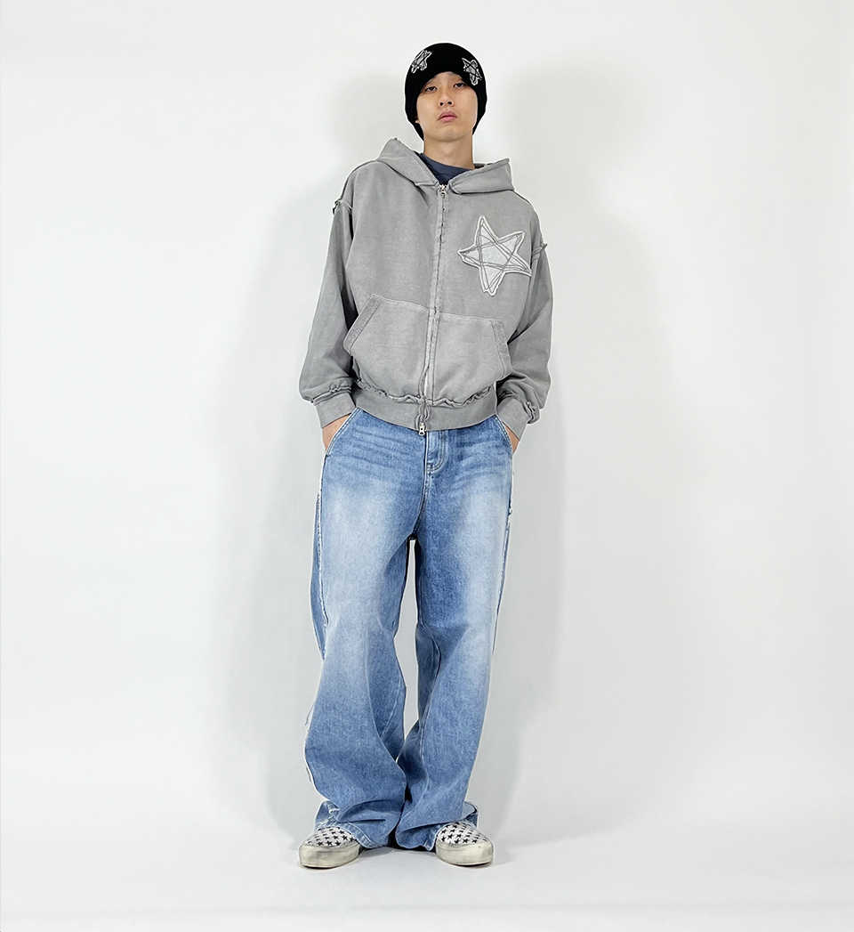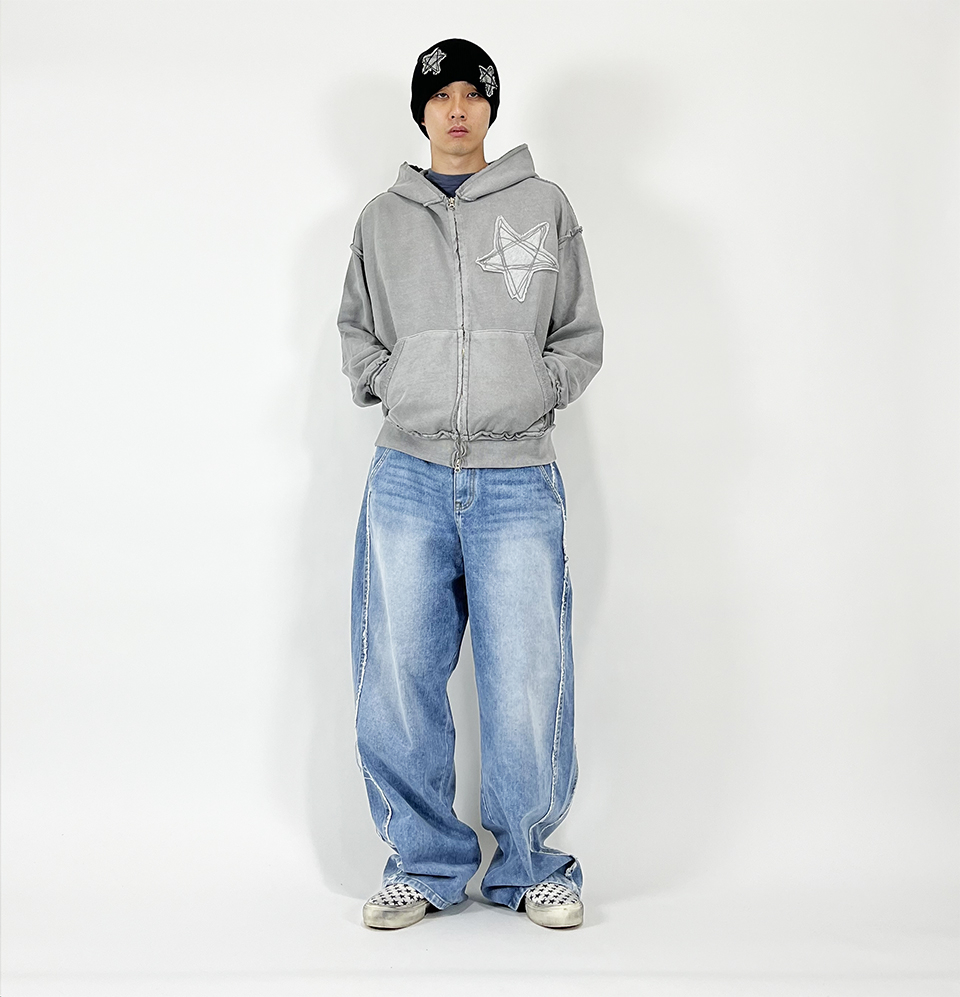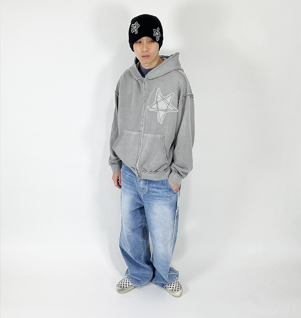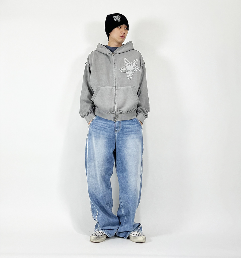 Star Reverse Pigment Sweat Hood Zip-Up ((Gray))