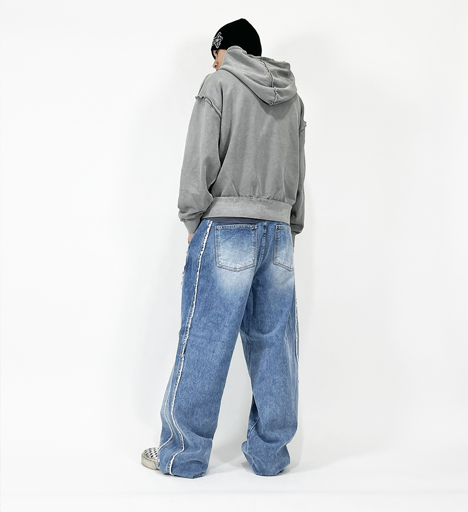 뒷주머니 지퍼 포켓이 포인트인 와이드 데님
