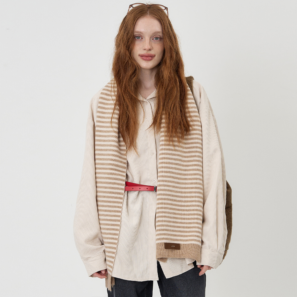 유니크한 스트라이프 디자인의 타이 니트 머플러