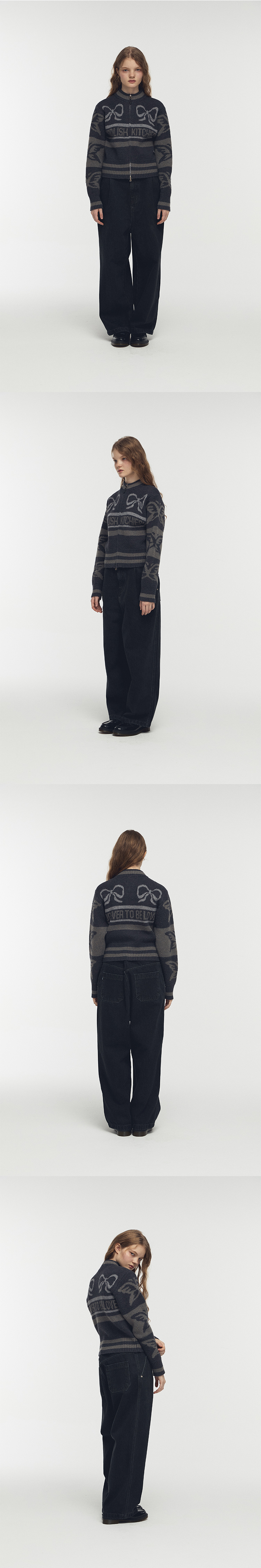 2-WAY Ribbon Crop Knit Zip-up Navy