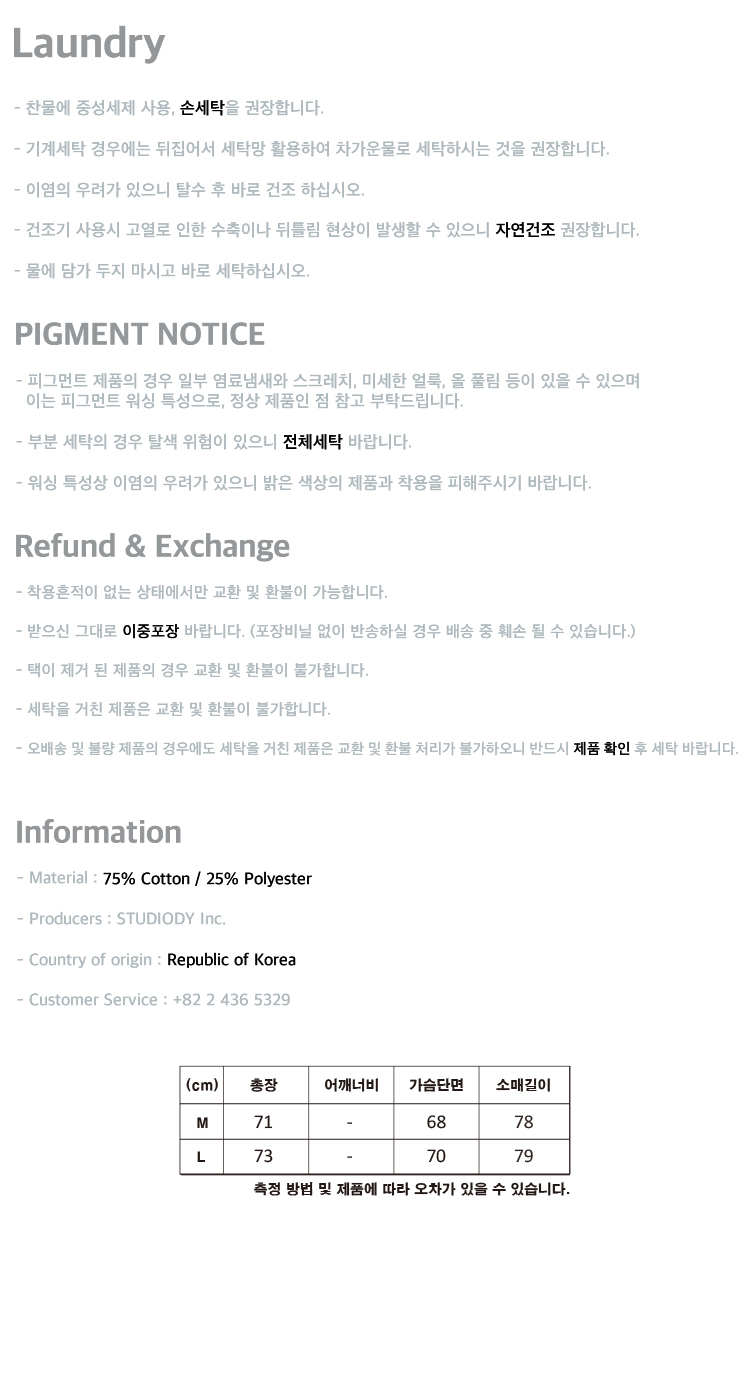 높은 중량감의 3단 쭈리 기모 원단과 복원력이 강한 고밀도의 2x1 RIP을 사용했습니다.