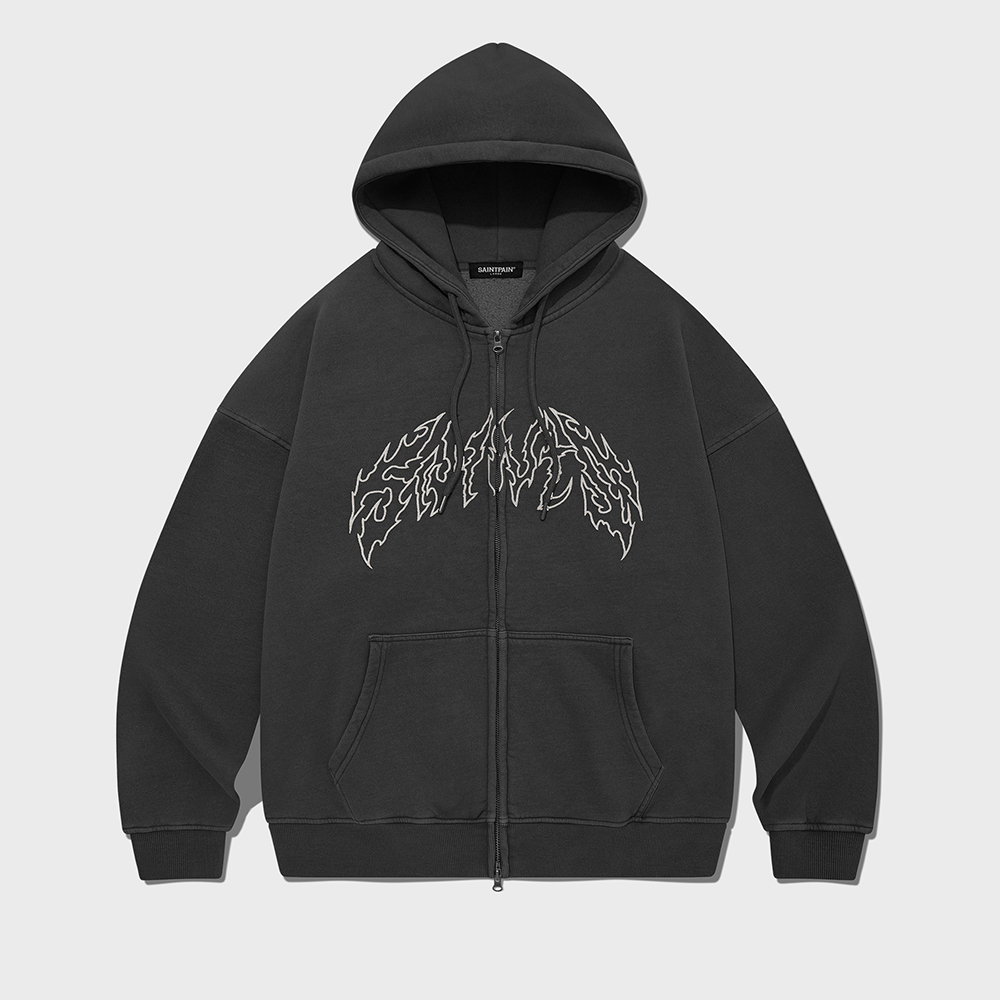 Applique STGM Pigment Washed Oversized Zip-up Hoodie Charcoal