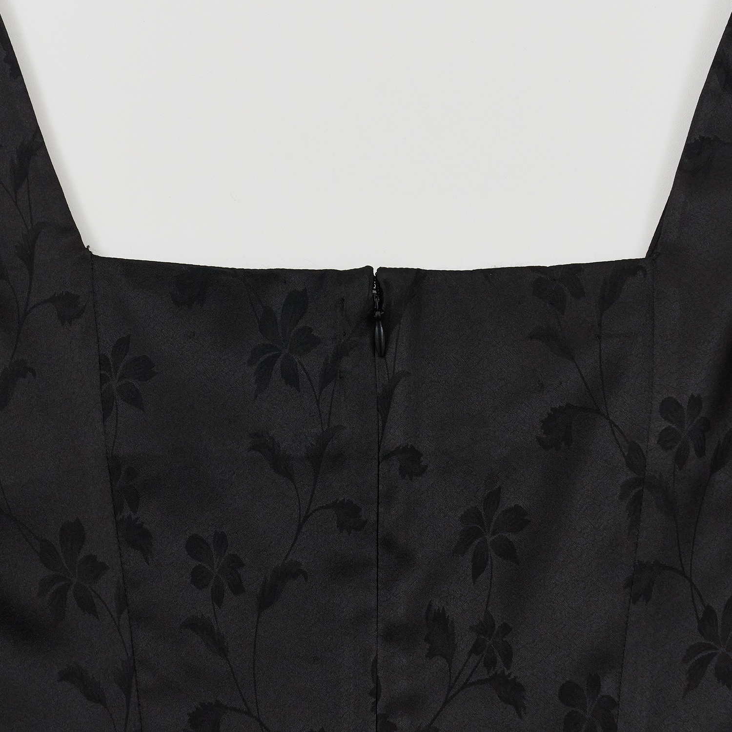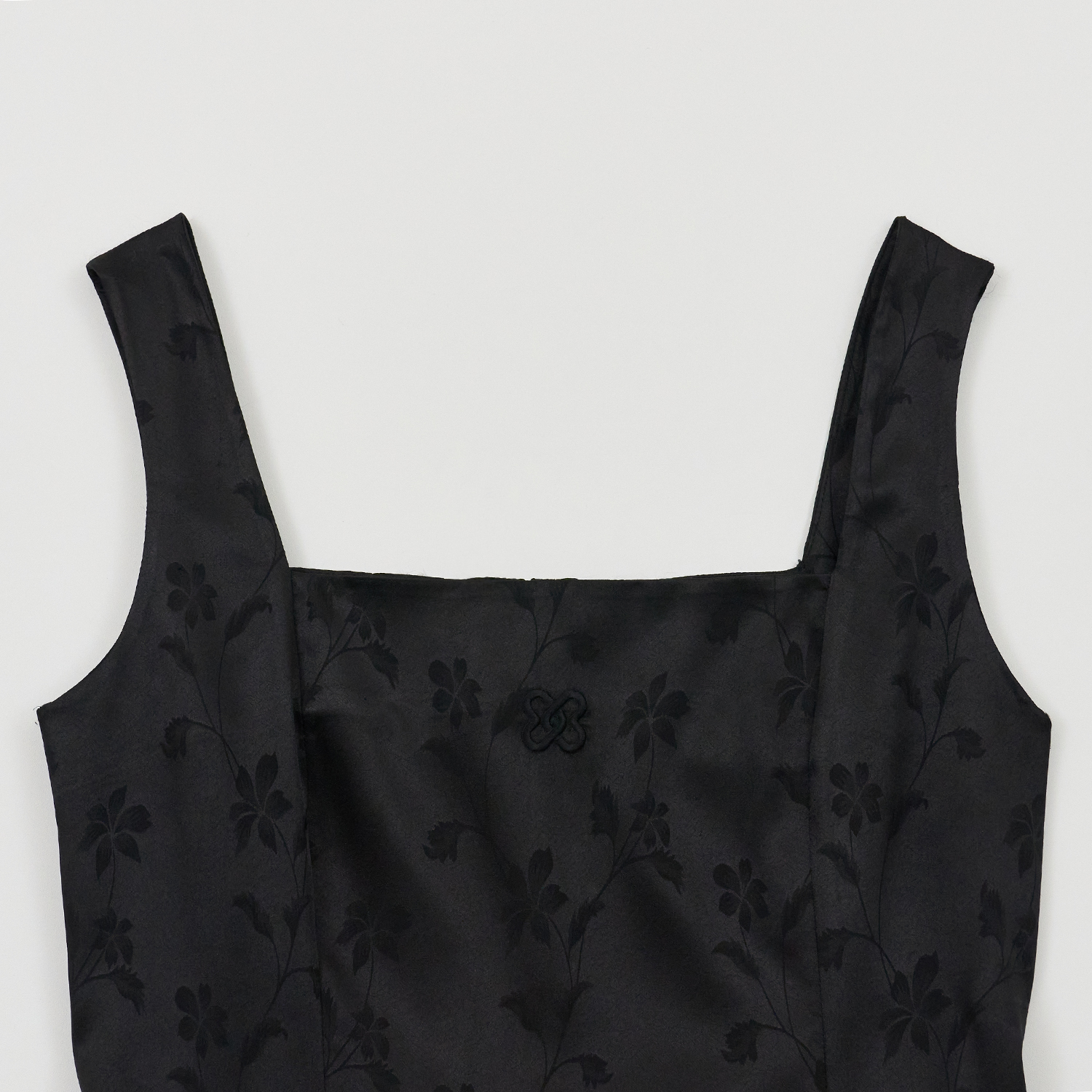 텐셀 린넨 혼방원단으로 흐르는 텍스처가 고급스러운 무드를 자아내고 세미벨라인의 슬리브리스 드레스로 벨르마만의 퀄리티와 슬림한 핏을 연출합니다.