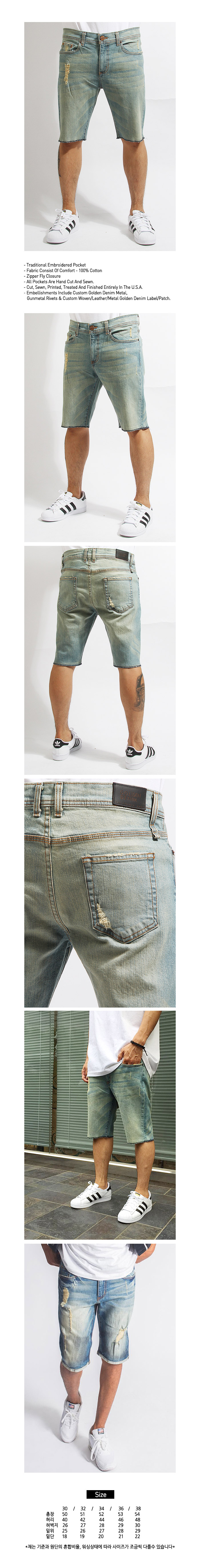어른의 음료 알코올 진로의 컬러칩을 진하게 담은 데님 쇼츠입니다.