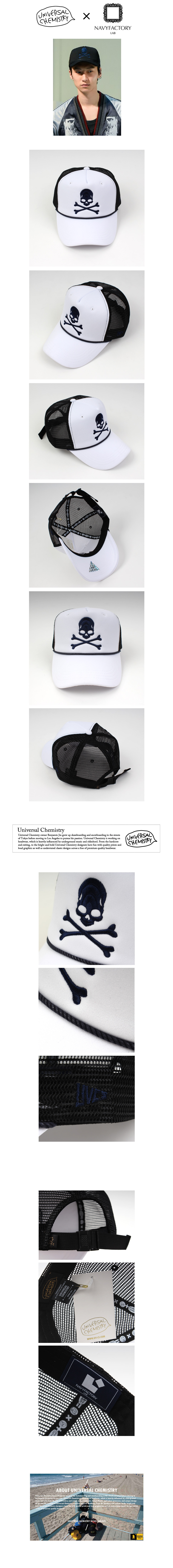Skull Rope Meshcap WH Cap by Universal Chemistry × Navy Factory Lab • Made from Cotton 100% • Eyelet detail for breathability • Adjustable Buckle back fastening • Branded design with rope • Embroidered design to front and side