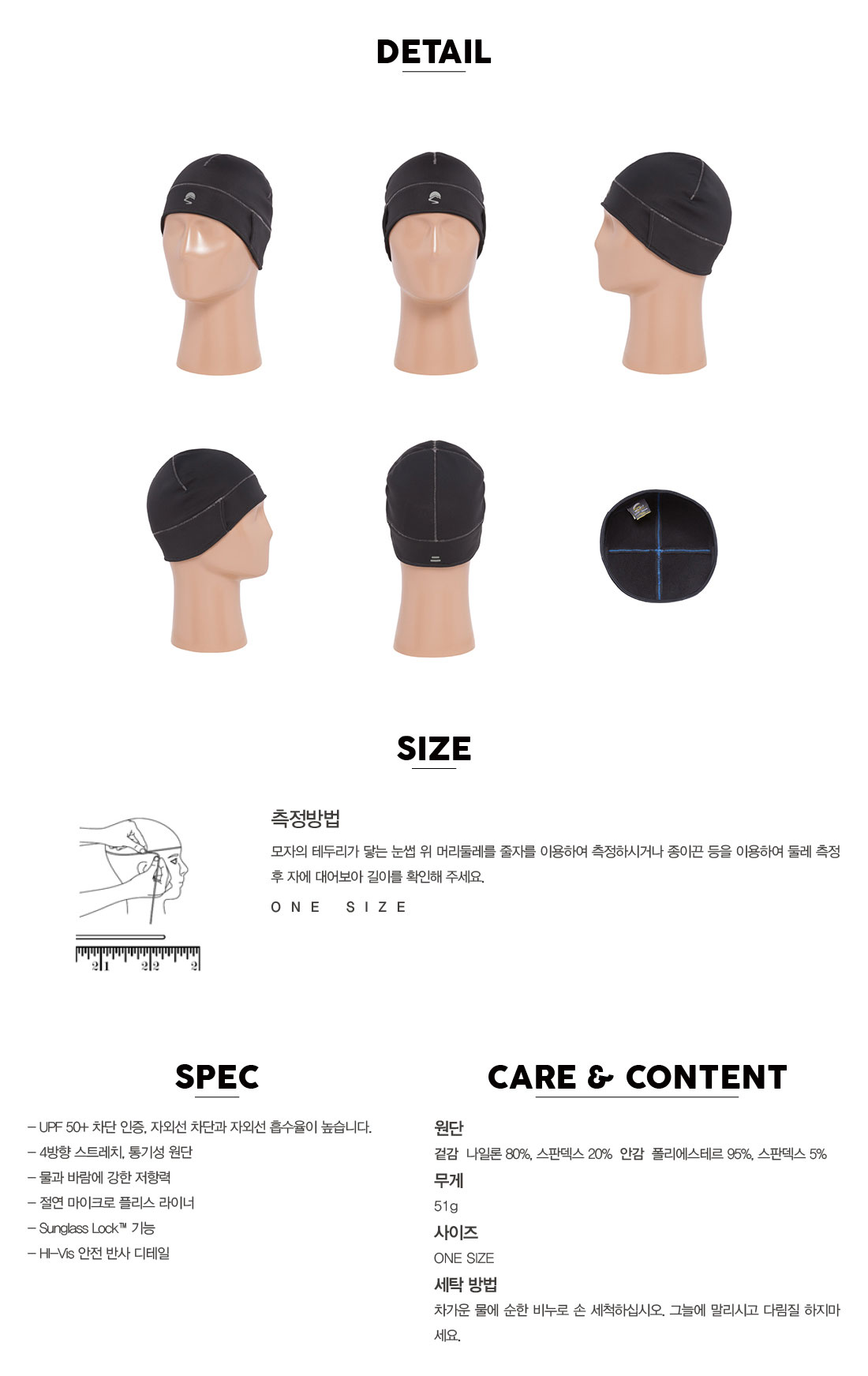 9652 울파워 발라클라바 200 스키용 등산용 방한 모자 원사이즈