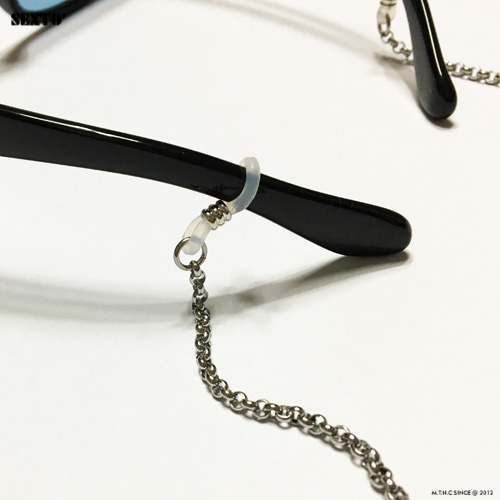 써지컬스틸이라는 소재와 작은 체인임에도 불구하고 견고하며 안경과 연결하는 고리는 고무 소재이므로