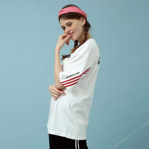 사커 두줄 테잎 배색이 돋보이는 스포티 무드의 반팔티