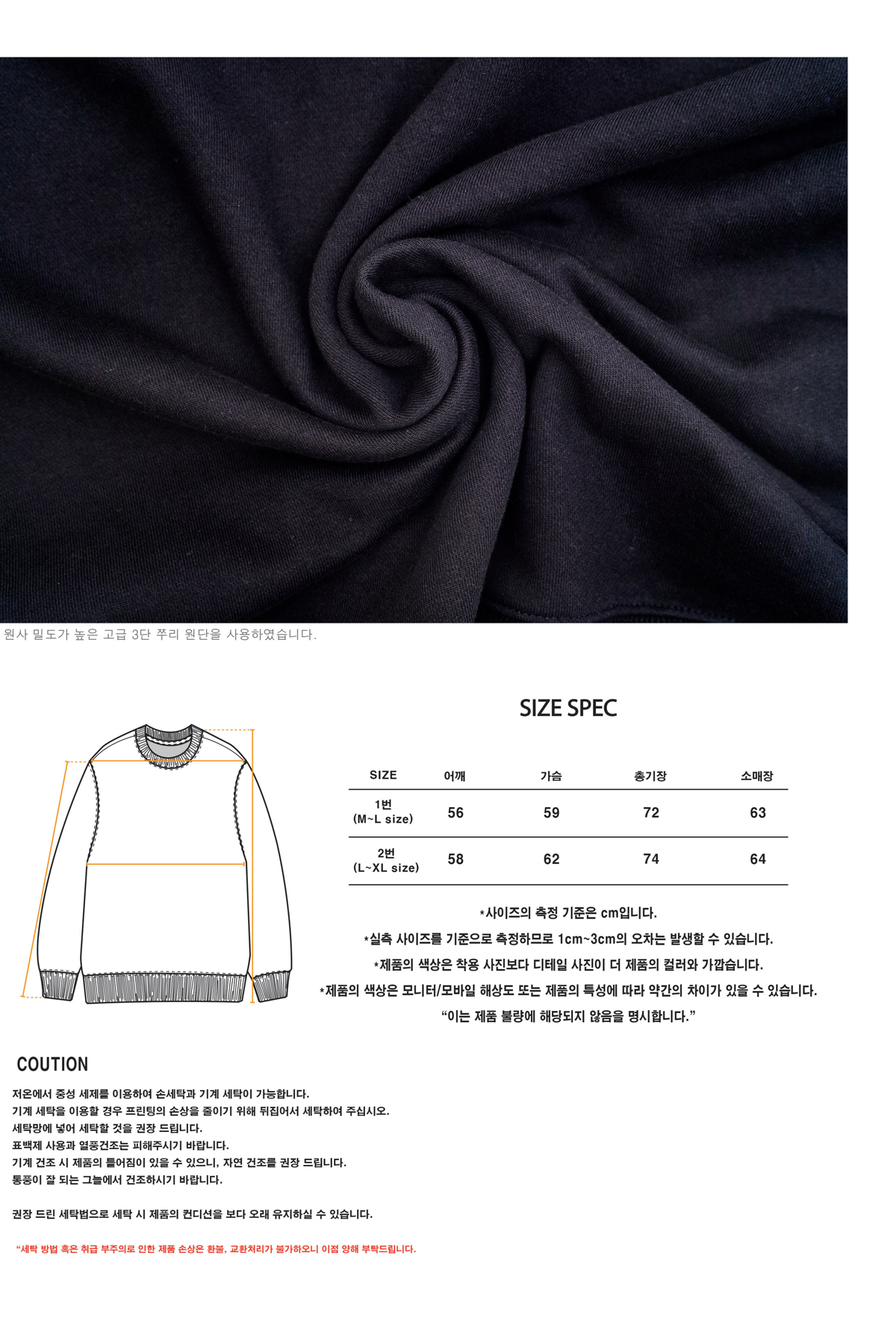 등판 그래픽이 인상적이며 핏 또한 안정적이어서 누구나 좋아할 만한 디자인의 맨투맨입니다.