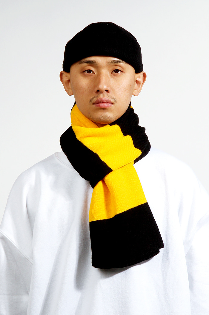 유니크한 스트라이프 디자인의 타이 니트 머플러