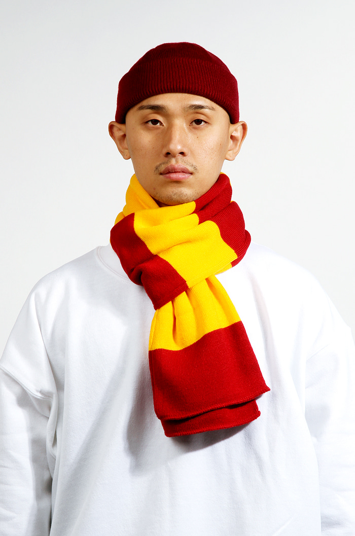 유니크한 스트라이프 디자인의 타이 니트 머플러