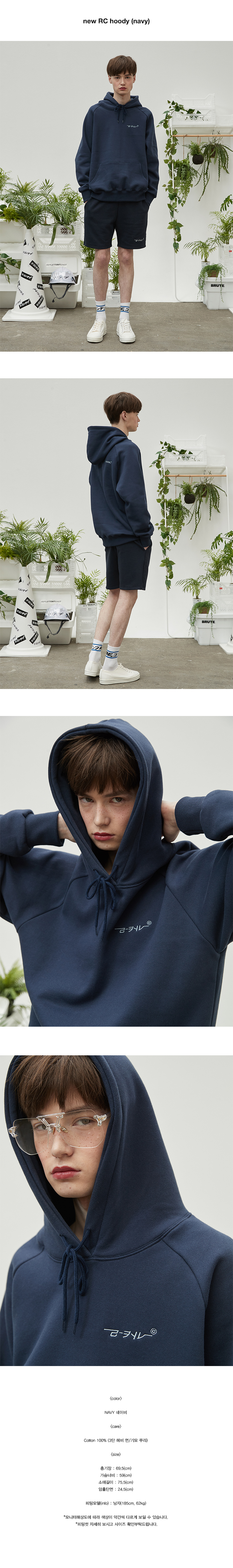 오버핏 후드 배색 엠보자수 후드