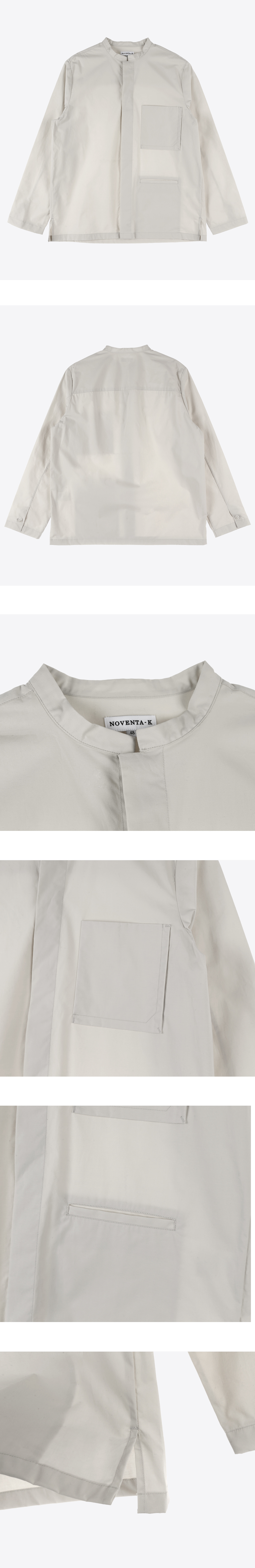 - 왼쪽 가슴에 사각 프레임의 스티치 고정 아웃포켓 + 외입술 주머니