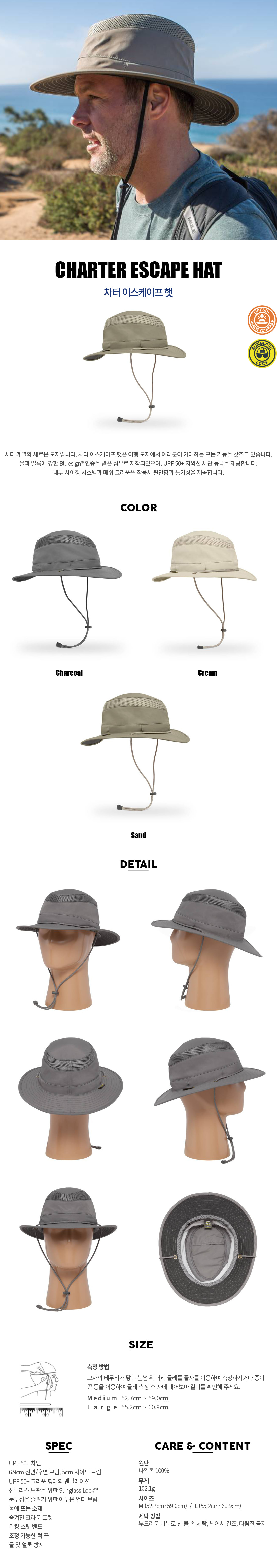 안정적인 각도의 챙이 자외선을 더욱 효과적으로 차단! 낚시, 하이킹, 일상에서 모두 착용 가능한 버킷햇!