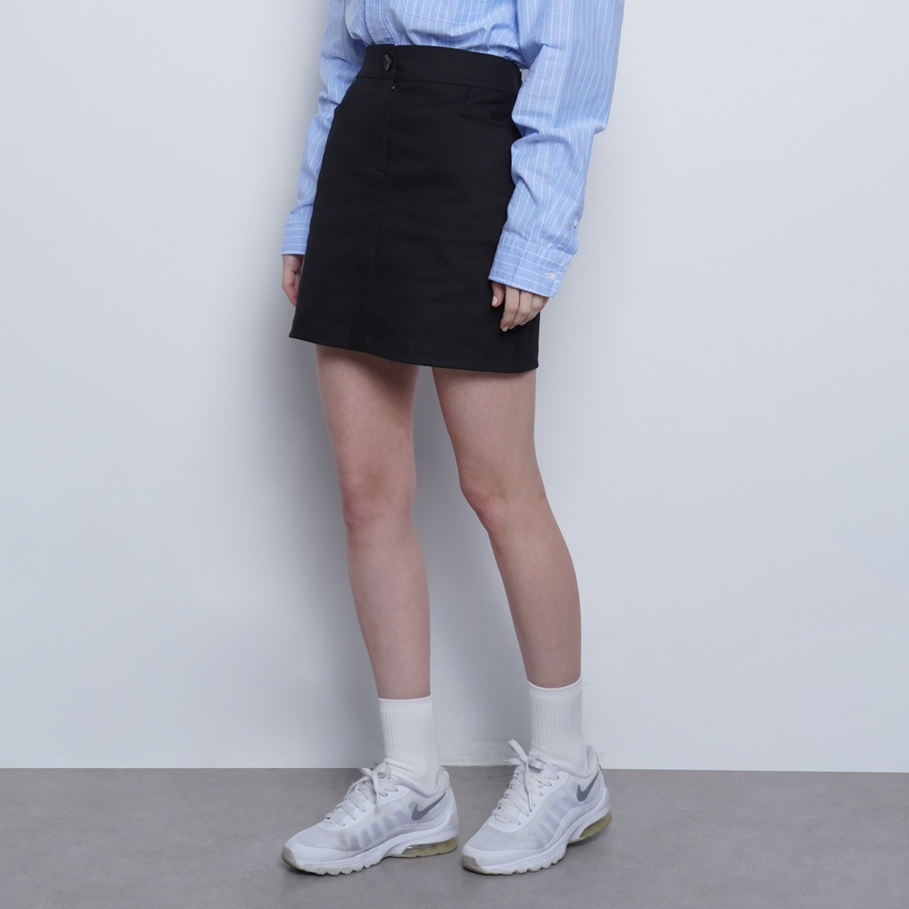 오카 코튼 플리츠 미니 스커트 블랙