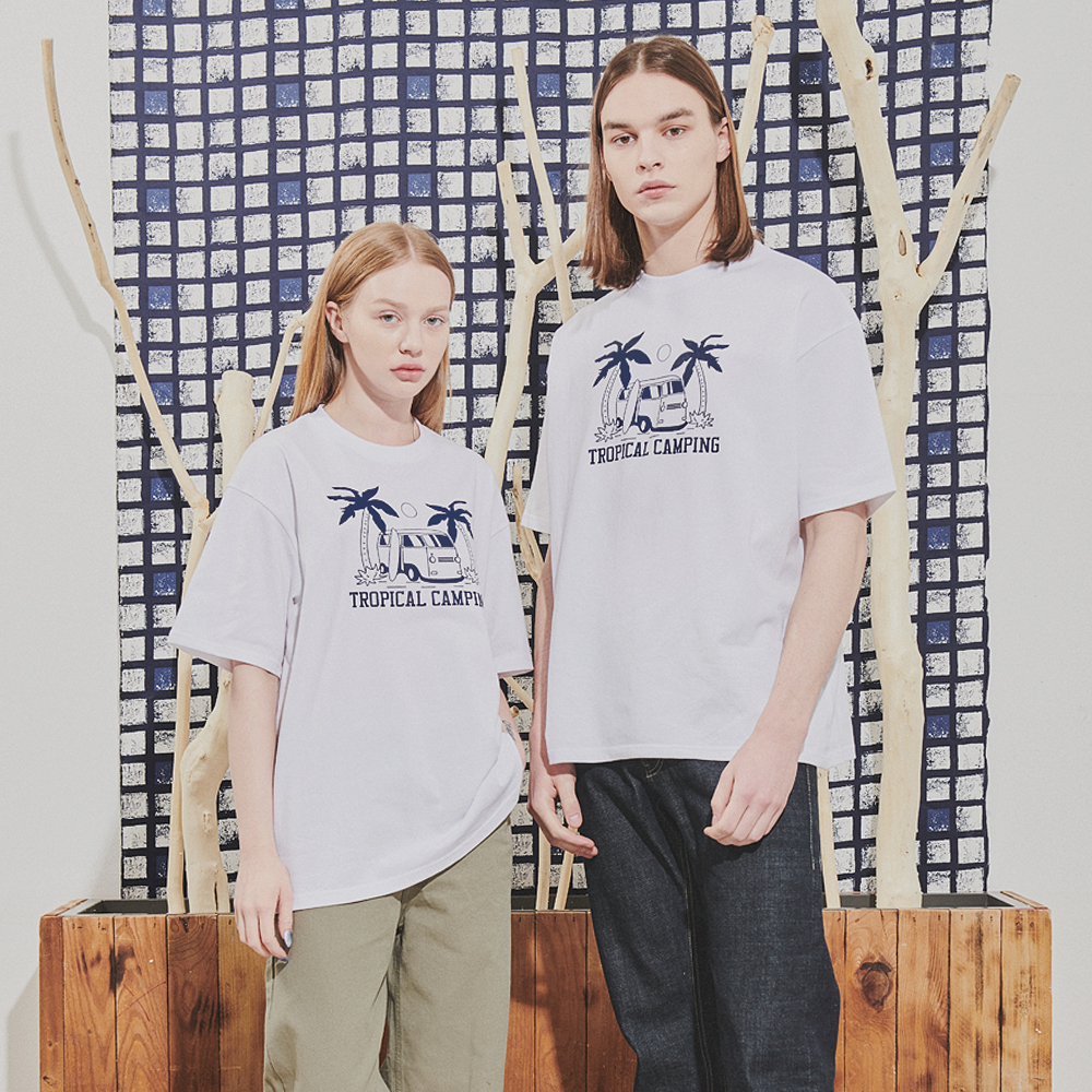 도트 홀리 로고 슬림핏 반팔티_블랙&카모