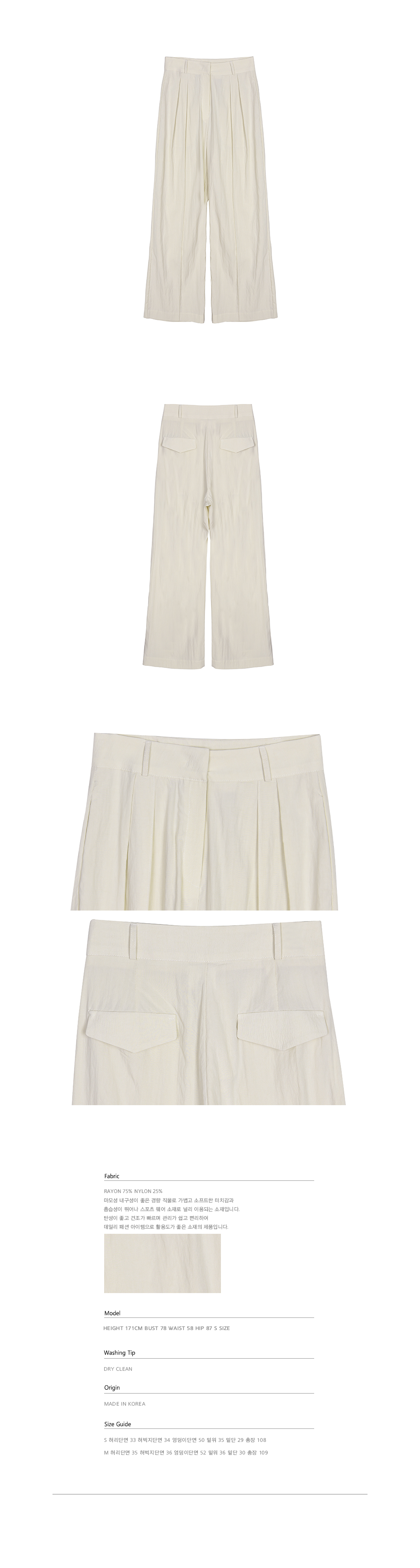 이난정 착용 Pintuck High Waist Wide Pants (beige, navy)