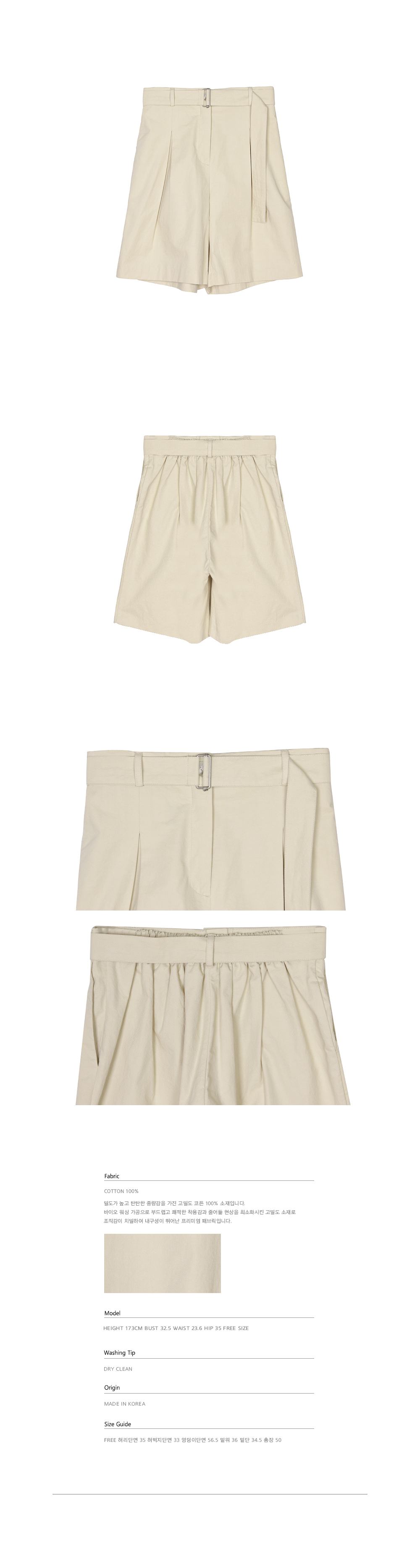 이니 린넨 핀턱 반바지 아이보리