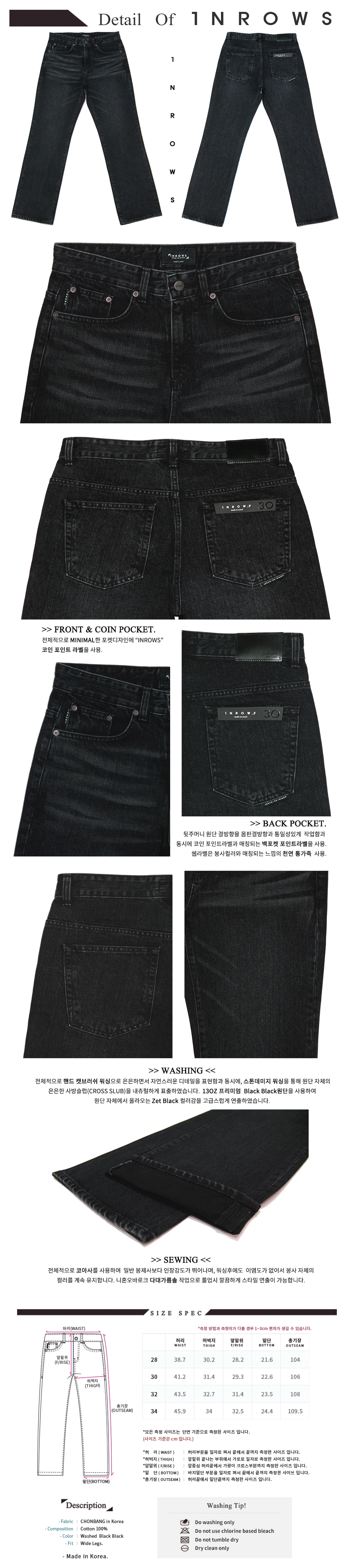 워시드 포켓 데님팬츠 흑청