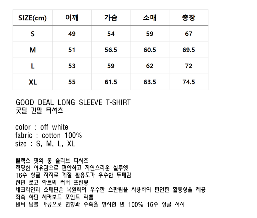 5.6oz 롱슬리브 긴팔티 (시보리 없음) White