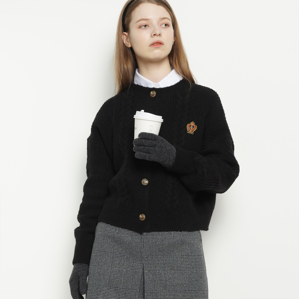 클래식하고 베이직한 꽈배기 조직과 볼드하지 않은 미디움 사이즈의 패턴으로 캐주얼한 디자인의 브이넥라인 니트 가디건 입니다.