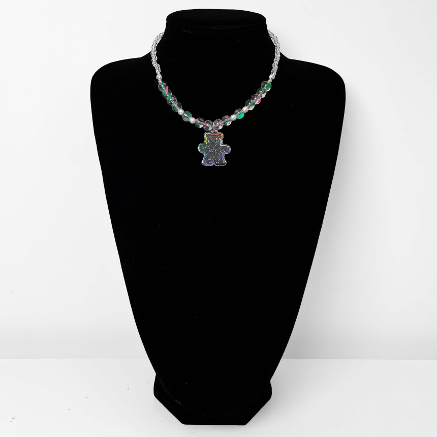 아크릴 구미곰 오브제에 맞춰 포인트 컬러 그린/핑크 유리구슬로 중심을 잡고