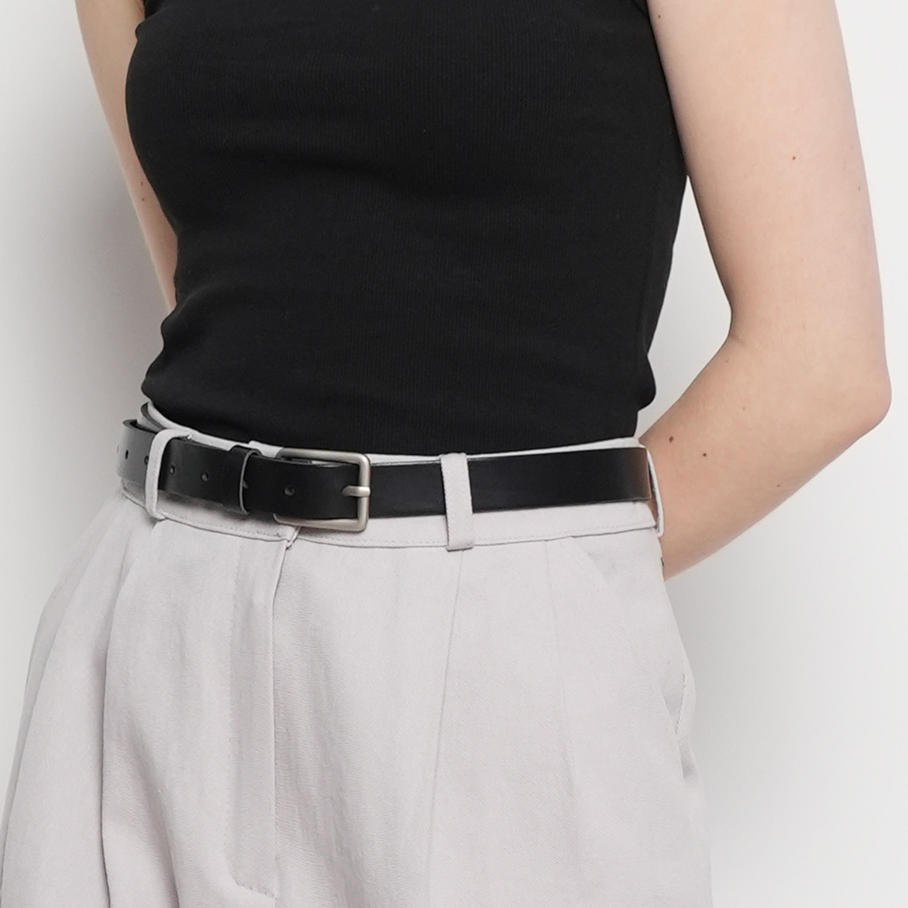 그리쉬 무광 렉탱글 리얼레더 벨트 블랙