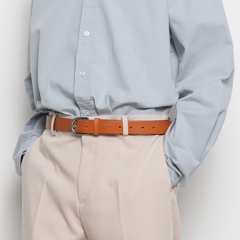 밀러 흑켈 스퀘어 버클 통가죽 벨트 브라운