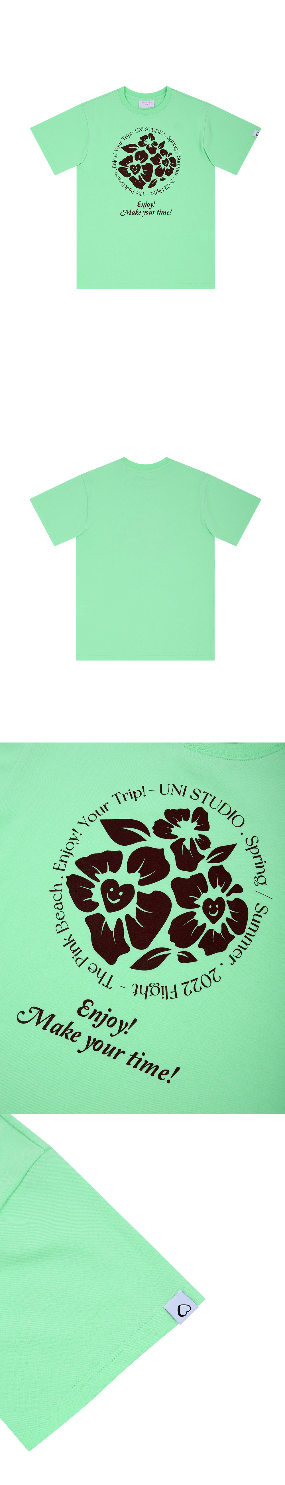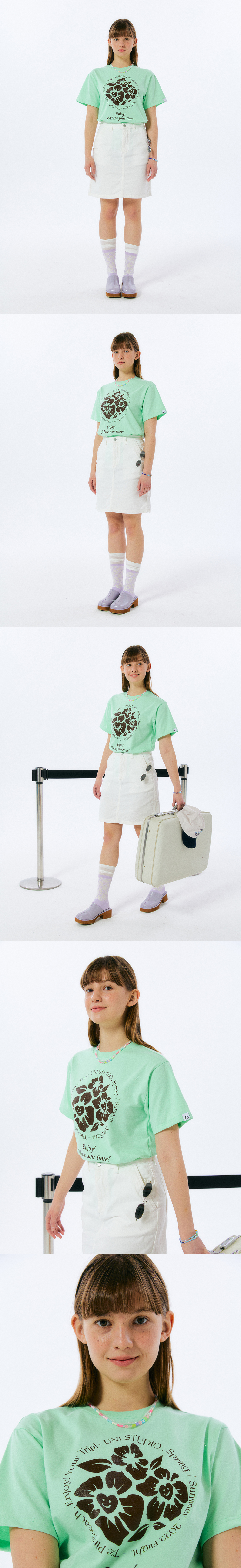 입체 레터링이 돋보이는 그린 바이브 온리 슬로건 티셔츠
