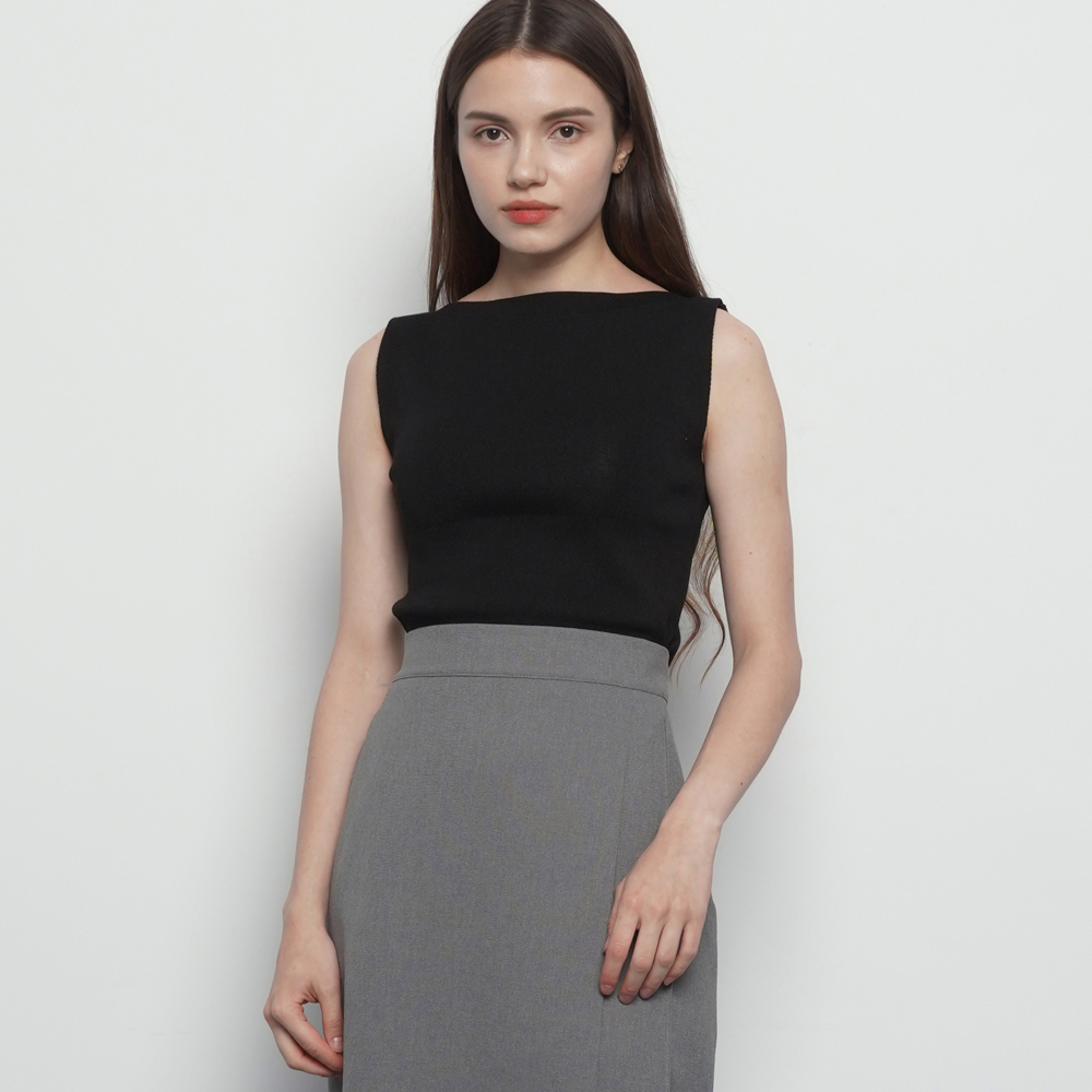 우먼 피쉬맨 보트넥 슬리브리스 블랙
