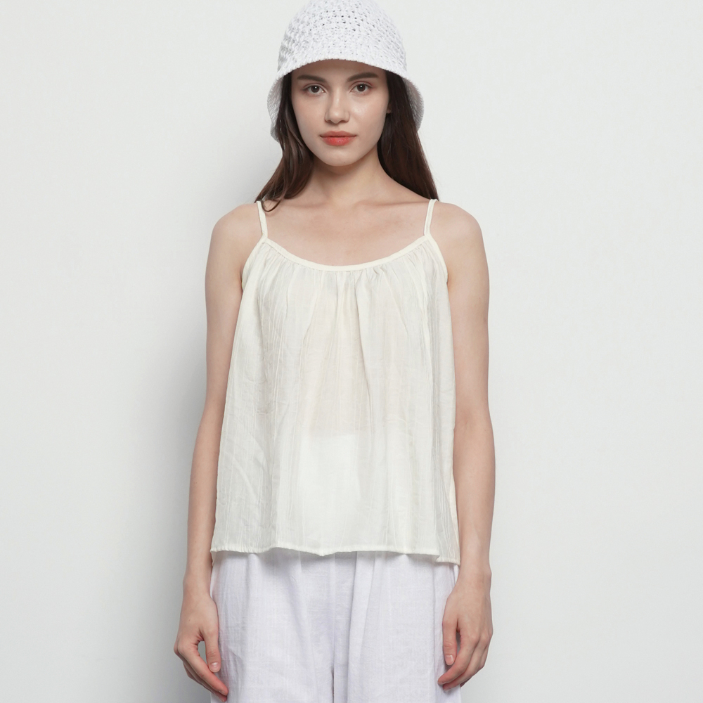펀칭 자수 리본 슬리브리스 블라우스 (화이트)