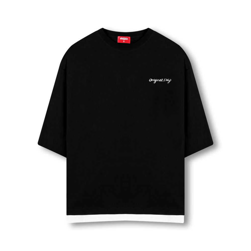 black Oversized T-Shirt with Small THE 12TH ROUND Logo