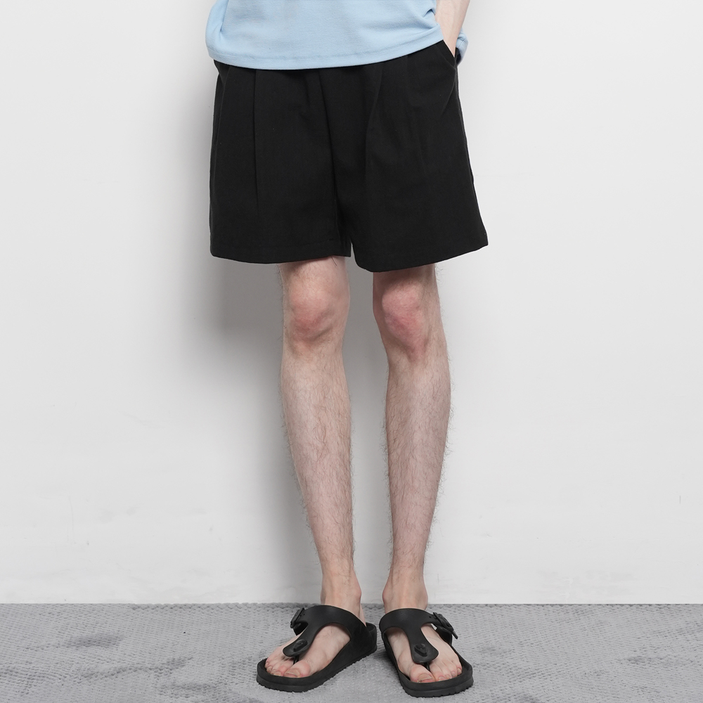 원 턱 버뮤다 리벳 데님 팬츠 블랙