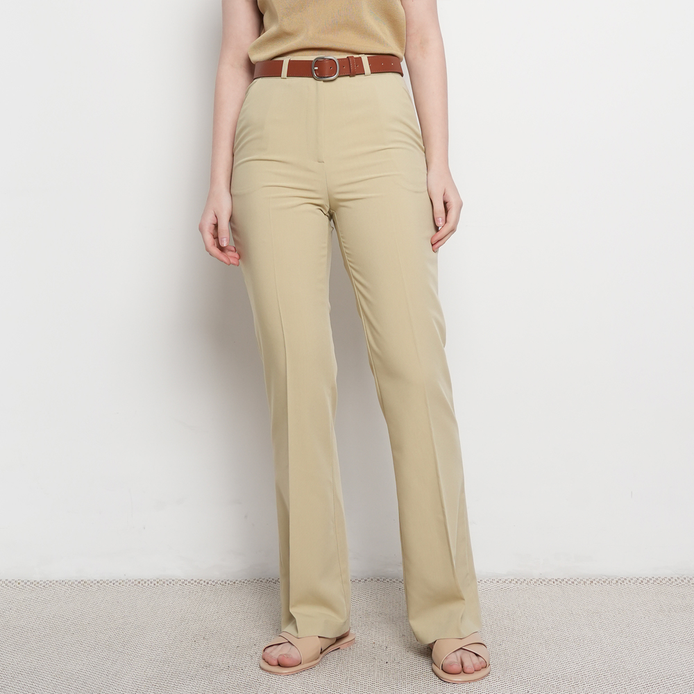 우먼 투핀턱 피그먼트 피치 와이드 코튼팬츠 베이지