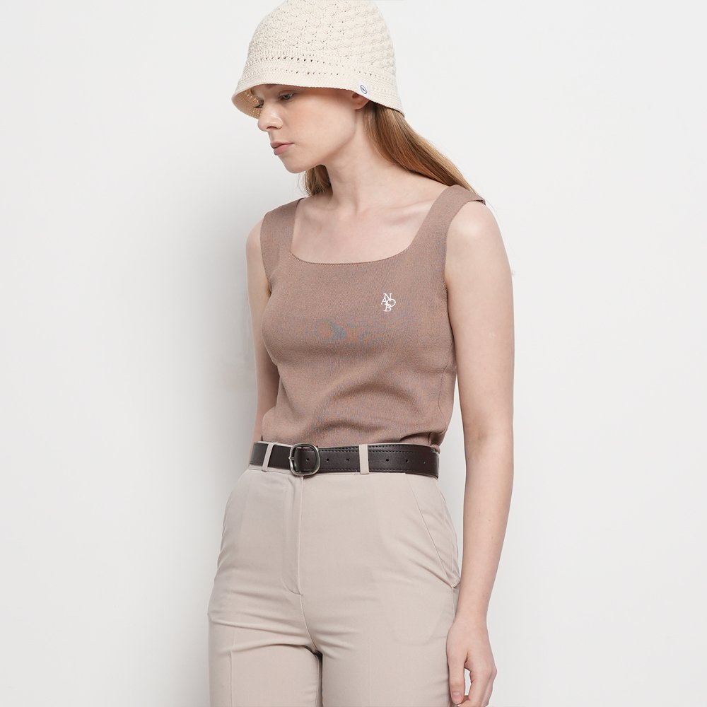 은은하게 반짝이는 소재 위로 언밸런스한 핀턱과 밑단 스트랩 디테일로 입체적인 포인트를 더한 나시입니다.